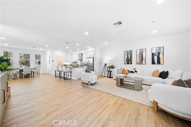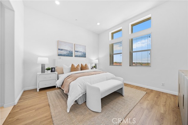 CORNER LOT, FIRST FLOOR SUITE, WALKING TO PARK AND SCHOOL! COVERED DECK & FRONT YARD!! This Stunning three-story townhome located in the vibrant Great Park community of Irvine. With 2,075 square feet of thoughtfully designed space, offers three bedrooms and three and a half bathrooms, The first-floor suite provides flexibility for guests, a home office, or multi-generational living, while direct garage access adds convenience. Upstairs, the open-concept main level is bathed in natural light, seamlessly connecting the living, dining, and kitchen areas. The gourmet kitchen features Special Island, quartz countertops, stainless steel appliances, a walk-in pantry. On the top floor, the primary suite is a true retreat, offering a walk-in closet, a luxurious ensuite bath, and expansive views of the Great Park hot air balloon. A secondary bedroom with its own private bath ensures comfort for all. Enjoy outdoor living with a covered deck and a charming front yard. Residents have access to resort-style pools, scenic trails, sport courts and clubhouse. Located in the top-rated Irvine Unified School District, this home is minutes from parks, shopping, and major freeways.