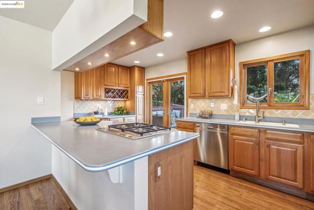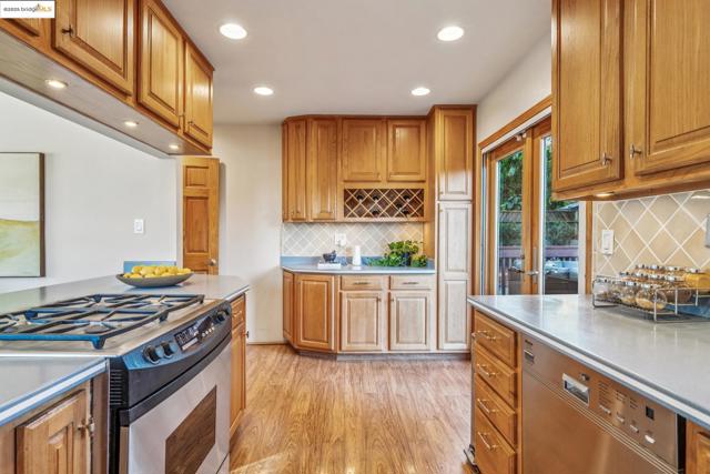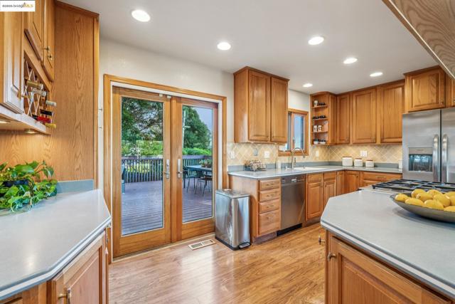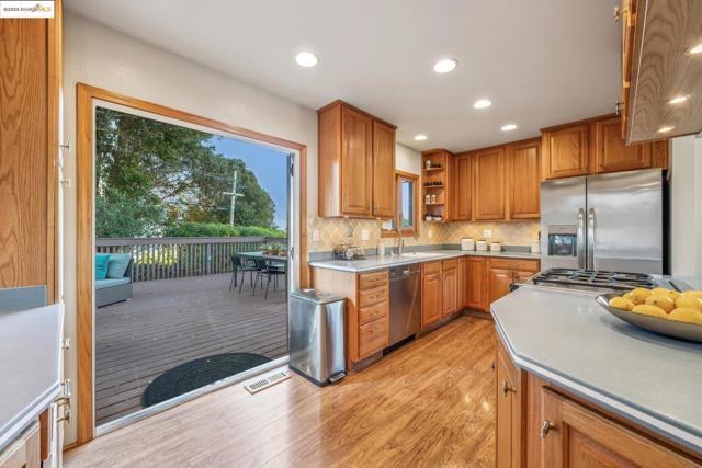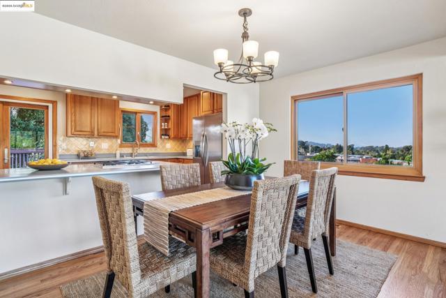 Sweeping views, warm woods and upgraded spaces distinguish this May valley Mid-Century home. Reflecting the indoor-out flow from public rooms to the expansive rear deck and yard, glass doors connect the open kitchen and and dining area to this inviting outdoor living area. Relax with a book or a glass of wine overlooking the sunset & MtTam. Entertain with ease:imagine backyard barbeques, fun lunches and warm weather dining. And after the weather changes you'll host guests and family gatherings in the spacious Livingroom with its brick fireplace and adjoining dining area.The main living area is all one level with 3 bedrooms & 2 remodeled baths including the Primary Ste. Refinished hardwood floors, dual pane windows, central heat & a/c. Interior stairs lead to lower level room opening to the back patio & int access to the garage.The back yard is fully fenced space w/ perimeter plantings, & the large sideyard may potentially be modified for RV or boat parking. Buyer to investigate. Views: Ridge