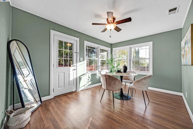 Charming ranch home with beautiful updates throughout! Enjoy updated floors, dual-pane windows, and a bright, open floor plan. The remodeled kitchen features stainless steel appliances and plenty of storage. Step outside to a large deck overlooking a spacious yard with peaceful views - perfect for relaxing or entertaining. The 4th bedroom offers a private entrance, ideal for guests or a home office. Large laundry/mud room and central HVAC. Just minutes to downtown, shopping, Bart and freeways. This home truly checks all the boxes!!