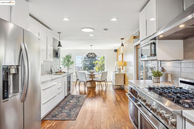 Welcome to Views, Entertainer's Kitchen & Quiet Location! Offering a single level floor plan, 4134 Harbor View is a stunner. A long driveway takes you up to the front door where you are greeted with custom lighting & custom tile through grand mid-century double doors. Spectacular bay & city views from dual paned windows create a serene environment, while the chef's kitchen & open floor plan are perfect for entertaining. Truly single level living, the living/kitchen & dining areas are on the South end, with quiet, well-appointed bedrooms just down the hall. A large family room or office connects both ends, perfect for TV or kid's toys. Multiple outdoor spaces grace the property, including a terraced front patio space & seating areas above the roof line for jaw-dropping views. The lot is enormous and extends well above the house, creating potential for additional uses. A quick walk or drive down the hill takes you to the Laurel Shopping district home of restaurants, cafe's, pubs, spas & the ever popular Cole Hardware. Welcome home to this very special property.
