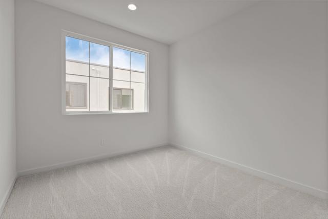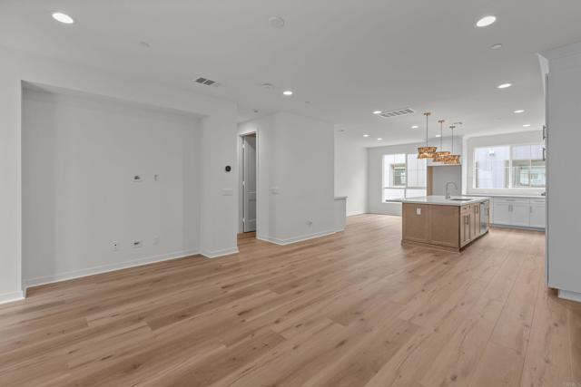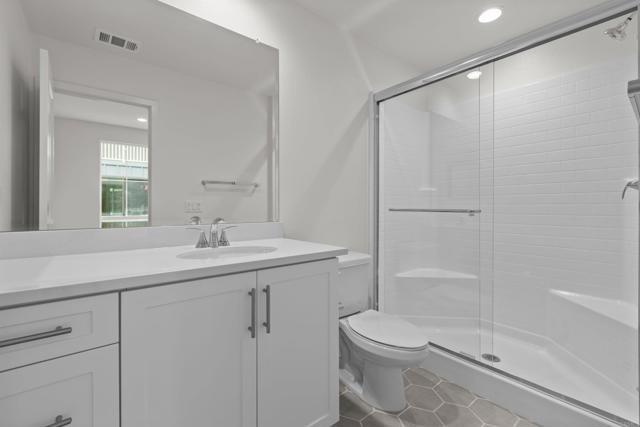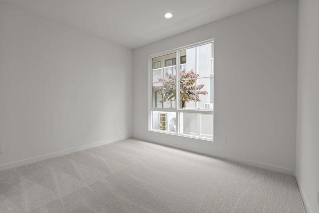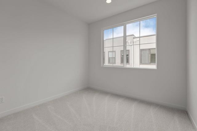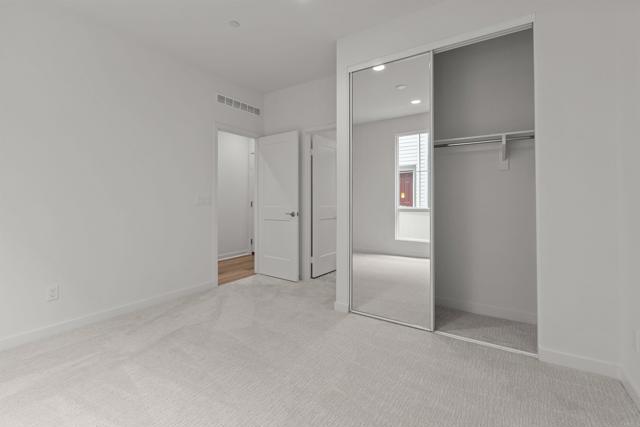 This stunning, three-story home showcases an open floor plan with 9-ft. ceilings and luxury vinyl plank flooring. Upstairs, the kitchen boasts Shaker-style cabinets, quartz countertops and Wolf® and Cove® stainless steel appliances. Enjoy the outdoors on the balcony. The third-floor primary suite features plush carpeting, two walk-in closets and a connecting bath that offers quartz countertop and a shower with custom tile surround. Additional highlights of this all-electric home include a solar energy system, LED lighting, electric charging station pre-wiring and smart thermostat.