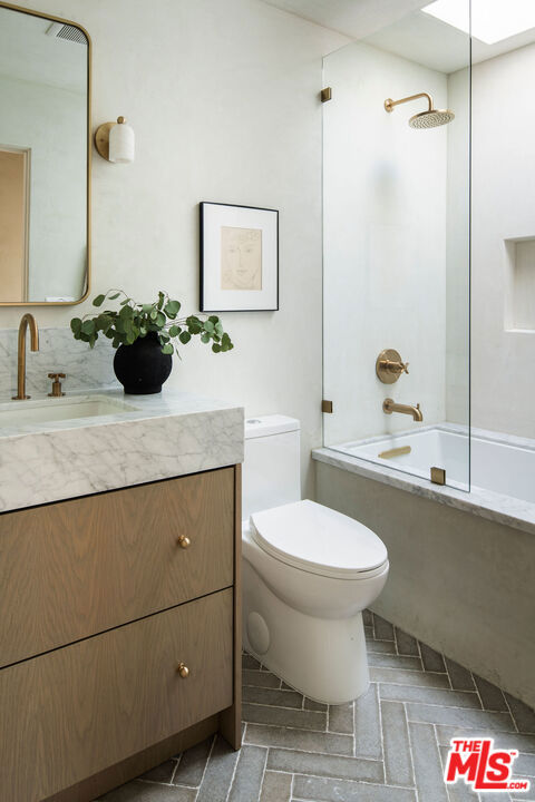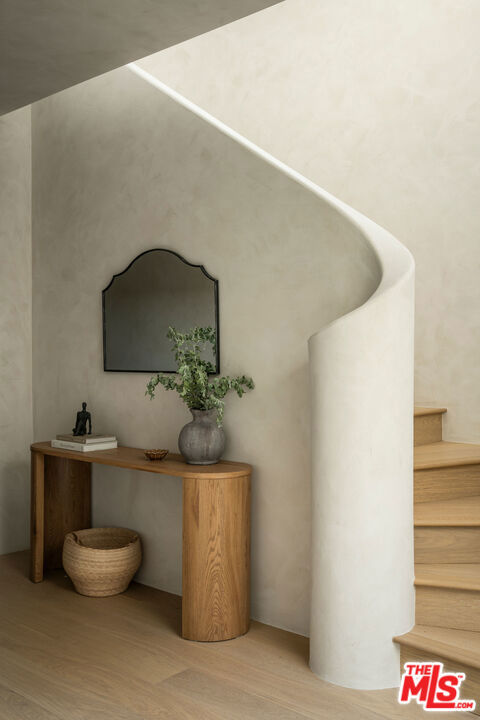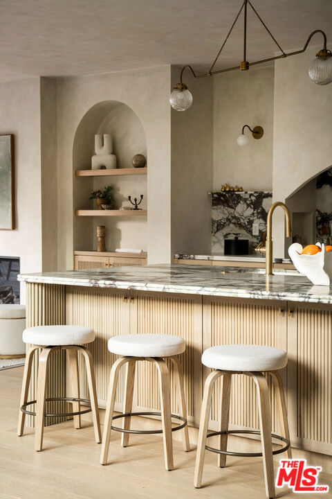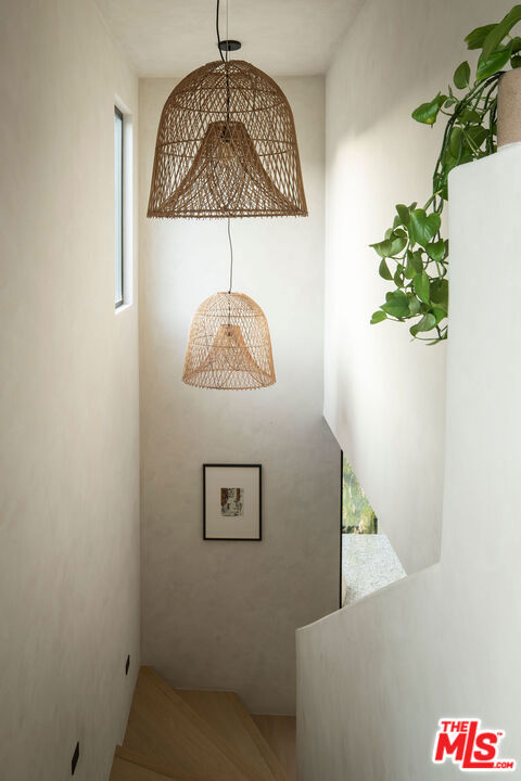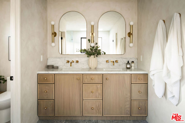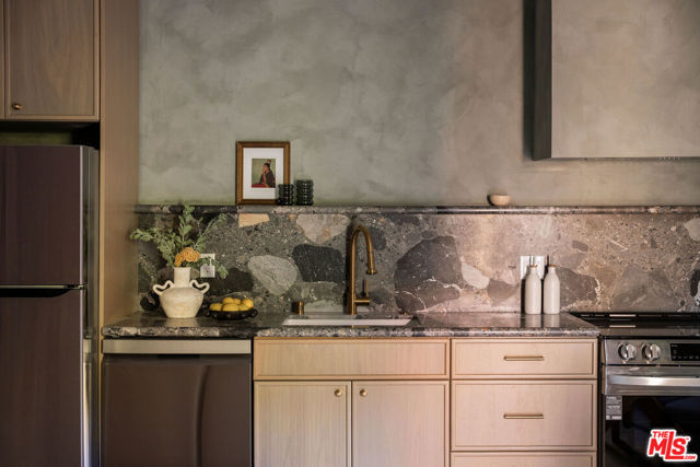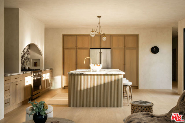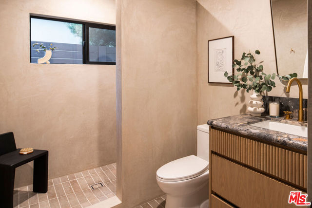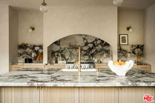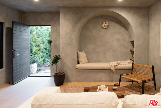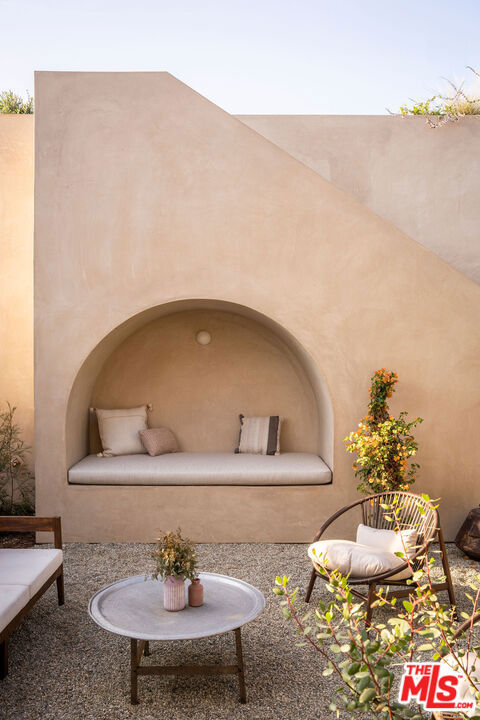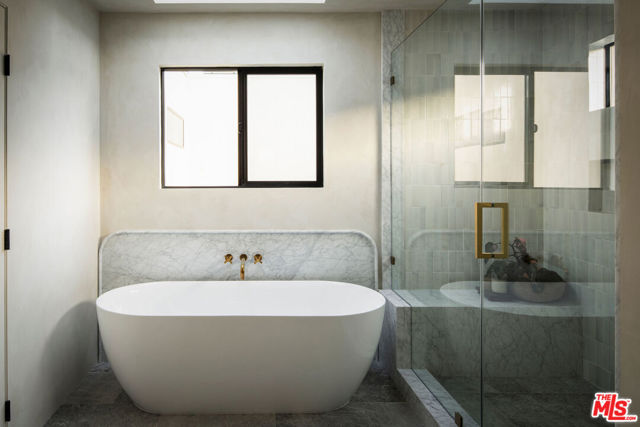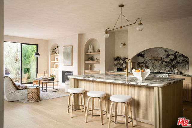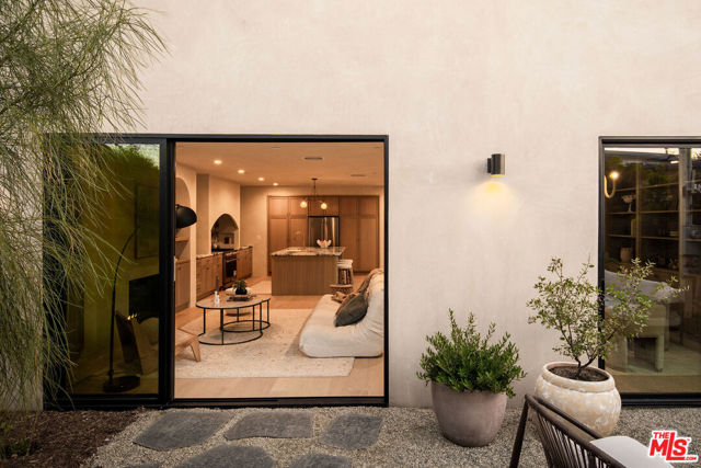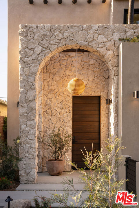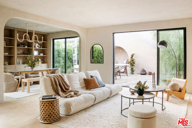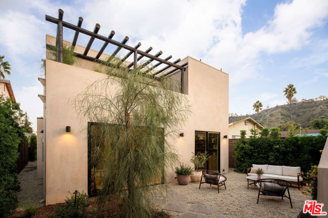 Newly built in 2025, this architectural Frogtown compound embodies the best of modern California living - where high design meets comfort, privacy, and functionality. The gated property includes two stunning new residences: a 3 bed, 2.5 bath two-story main home with attached 2-car garage and a sophisticated 1 bed, 1 bath ADU with its own rooftop deck and outdoor kitchen. Each home boasts impeccable designer finishes with lush landscaping. Together, they form a serene retreat in one of LA's most dynamic and creative neighborhoods. Past the beautifully landscaped front yard, the travertine-clad main home invites you through a graceful arched entryway into a space that feels both sculptural and warm. Just beyond the entry hall, a dramatic curved plaster staircase sweeps upward to the second level. An atrium with its own limestone fountain and a Weeping Acacia tree is viewable through expansive glass walls, filling the home with light and tranquility. The powder room, conveniently located near the front door, features Roman clay walls and a Calacutta Viola marble sink. The open-concept main level offers a seamless flow for entertaining and everyday living. The living room features a gas fireplace flanked by custom, arched built-ins, while the adjoining dining area is anchored by stunning, floor-to-ceiling built-in buffet shelving and encircled by voluminous Milgard sliding doors that open seamlessly to the lush backyard. At the heart of the home, the designer kitchen showcases a striking rectangular island clad in fluted white oak, paired with honed Calacatta marble countertops, a paneled dishwasher, and premium THOR appliances - including a six-burner range and stainless steel refrigerator. The kitchen features hidden storage behind sliding cabinet pocket doors, and the built-in microwave tucked within the pantry adds sleek convenience. All three bedrooms are upstairs, each with new Milgard windows and limewash walls. The two secondary bedrooms share a stylish bathroom featuring a bathtub and shower, while the nearby laundry closet provides everyday convenience. The primary suite is a peaceful sanctuary featuring limewash walls, a large walk-in closet concealed by wood-fluted doors, and a private terrace with built-in seating that overlooks the backyard. The spa-inspired en-suite bath tiled in Tundra marble features a soaking tub, a large standing shower, a dual-sink vanity, a water closet, and windows that bathe the space in natural light. At the rear of the property, the 1 bed, 1 bath all-electric guest house (ADU) mirrors the main home's style and craftsmanship. The open living space features warm and inviting engineered oak wood floors, limewash walls with a custom-built seating nook, and a full kitchen with beautifully unique Ceppo Grey marble countertops. A tranquil bedroom with dark limewash walls, a stunning bathroom with limestone tiles, and a stacked laundry in a hallway closet make it a fully self-contained space. Outside, the ADU's private rooftop deck is perfect for sunset gatherings, with bar-top seating and built-in BBQ, beverage refrigerator, and sink, creating a true hideaway for guests or an ideal live-work retreat. The backyard is a lush oasis designed for dining and relaxation, featuring a built-in arched seating bench and romantic greenery throughout. Additional highlights include a finished two-car garage with EV outlet, and all-new systems, including roof, foundation, HVAC, plumbing, sewer line, and electrical. Ideally situated in Frogtown, just steps from the LA River bike path, this exceptional compound is surrounded by the area's most beloved local spots, including Wax Paper, Lingua Franca, Loreto, Salazar, and Spoke Bicycle Cafe. Whether you're looking for a design-forward sanctuary or a flexible investment opportunity, this modern compound offers the best of both worlds: style, sophistication, and serenity in one of LA's most sought-after neighborhoods.
