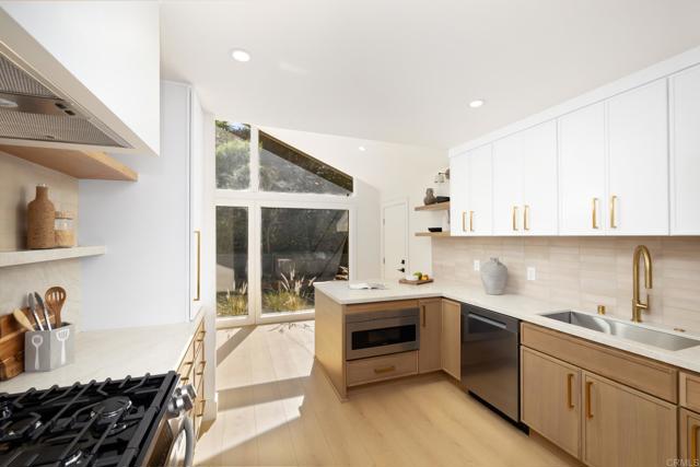 Tucked into the peaceful hills of the Hollywood Riviera, this captivating remodeled home blends luxurious finishes with effortless coastal living. A bright entry opens to a sun-filled living room crowned by soaring ceilings and floor-to-ceiling windows framing the lush backyard beyond. Natural light pours across the wide-plank flooring, while the sleek fireplace anchors the space with warmth and sophistication. The adjacent dining area leads to a chef's kitchen designed to impress, featuring quartz countertops, shaker wood cabinetry, elegant fixtures, designer lighting, and gleaming appliances that elevate every meal. The primary suite is a calming retreat with soft tones and abundant light, while secondary bedrooms offer flexible space for family, guests, or a stylish home office. Bathrooms showcase impeccable craftsmanship with fluted wood vanities, brushed gold fixtures, and stunning tilework that feels fresh and timeless. Outdoors, the landscaped backyard invites relaxation and entertaining alike, enjoy a morning coffee on the sunlit deck or dinner under the stars surrounded by mature greenery. Just around the corner from Rocketship Park and only minutes from pristine beaches, Riviera Village, vibrant coastal dining, and award-winning schools, this Hollywood Riviera gem offers the perfect blend of luxury and relaxed South Bay living.