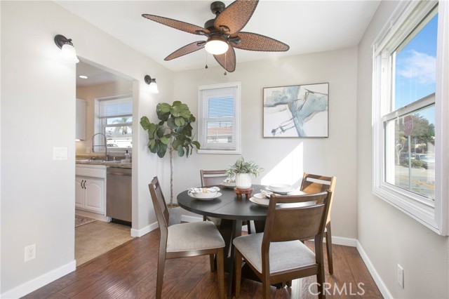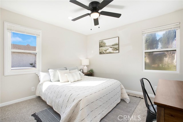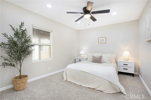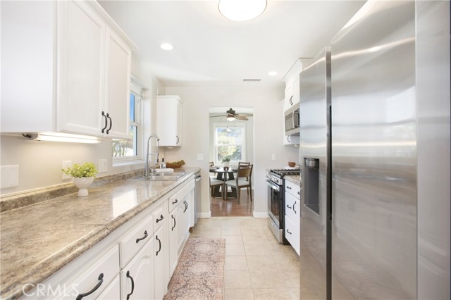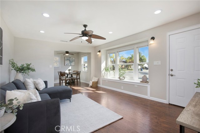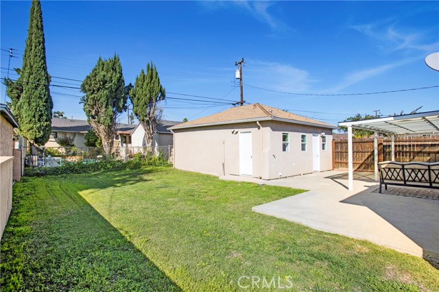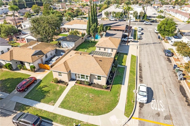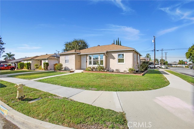 BEAUTIFULLY UPDATED 3-BEDROOM HOME ON A CORNER LOT WITH SPACIOUS YARD, NEW AC, AND DETACHED GARAGE PRIMED FOR ADU CONVERSION! Welcome to this charming and meticulously maintained single-story 3-bedroom, 1-bath home offering comfort, style, and modern functionality throughout. Situated on a desirable corner lot, this residence boasts new flooring, new paint inside and out, new dual-pane windows that provide abundant natural light and energy efficiency, and are guaranteed for life for lasting peace of mind. Step inside to a tastefully designed living room with recessed lighting and ceiling fan, flowing seamlessly into the dining area. Each room has been upgraded with hardwired internet and USB ports, ensuring your electronics are always powered and connected. All 3 bedrooms feature new carpet, fresh paint, and ample closet space with built-in storage, thoughtfully designed for convenience. The bathroom is beautifully updated with exquisite tile work, wood-grain porcelain flooring, a personalized niche, tub/shower combo, and wired for an exhaust fan for added comfort. The kitchen is a chef’s dream, featuring brand-new stainless steel appliances: gas stove, refrigerator, dishwasher, and over-the-range microwave. Designed to accommodate gas or electric stoves, it offers ample cabinet space, extended countertops, and a new garbage disposal. The detached 2-car garage, approx. 550SqFt, is primed to be converted to an ADU; featuring an attached bathroom with sink and toilet, a 60 AMP subpanel, fully upgraded laundry room, workshop with cabinet storage, separate access, and ample parking. The backyard is perfect for outdoor living, with a shaded patio, outdoor lights and outlets, motion-detection lighting for safety, gutters, and front/back irrigation with an easy-to-use timer. Built with premium materials and expert craftsmanship, this home includes a brand-new AC unit, new permitted 200 AMP electrical panel with upgraded wiring, high-end copper plumbing, and insulated walls. Conveniently located near a highly desirable high school, this residence offers an ideal setting for families, combining modern upgrades with timeless charm and thoughtful design throughout.