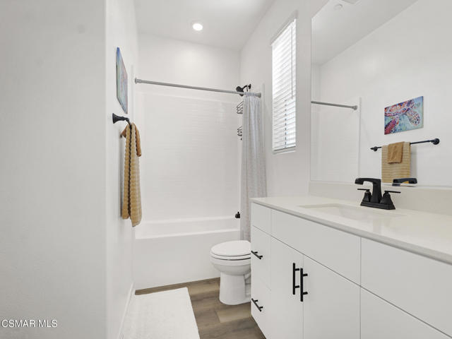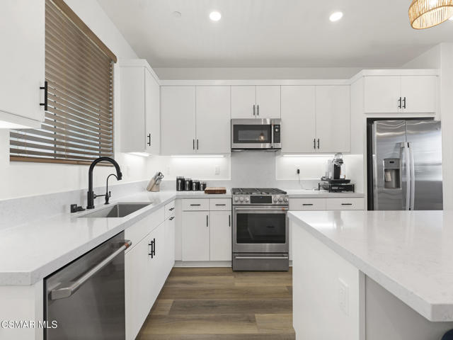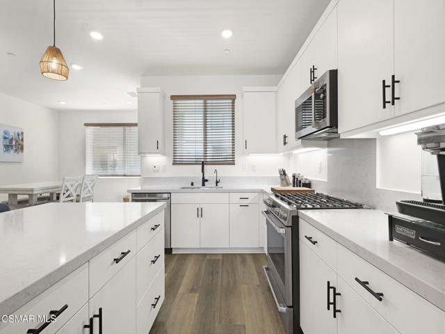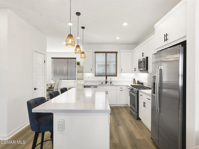 Welcome to this beautifully maintained Calla Plan 2 townhome in the sought-after FivePoint Valencia community. This modern three-bedroom, three-and-a-half-bath home combines open-concept design, quality finishes, and pride of ownership--it still feels like a brand-new home.Throughout the residence, you'll find LVP flooring and upgraded cut Berber carpet, creating a warm and contemporary feel. The main level offers a bright living area that flows into the dining space and a stylish kitchen with Quartz countertops, a large center island, and stainless-steel appliances. Upstairs, two spacious ensuite bedrooms include a relaxing primary suite with walk-in closet and spa-inspired bath, while the lower level features a versatile third ensuite, perfect for guests or a home office.Additional upgrades include a paid solar system, Puragain water system with reverse osmosis, EV quick-charging outlet, and epoxy garage flooring with overhead storage. Residents enjoy access to resort-style amenities--parks, pools, playgrounds, trails, and gathering spaces--all minutes from shopping, dining, and top-rated schools.This home offers low-maintenance living and a vibrant community lifestyle in one of Santa Clarita's most desirable neighborhoods.