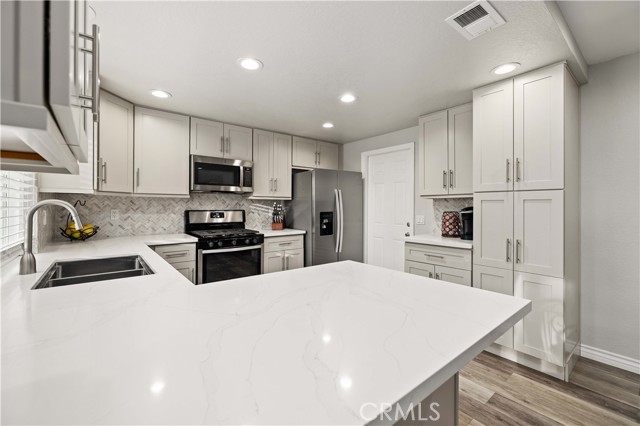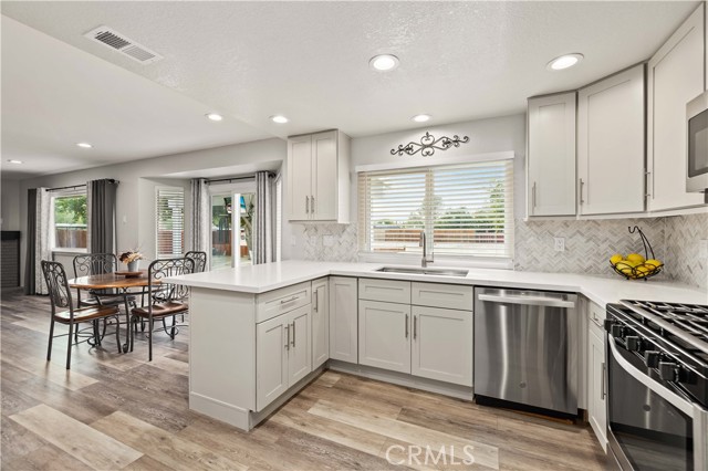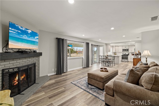Welcome to this Lake Los Angeles Beauty — Better Than New! Prepare to be impressed from the moment you arrive at this stunning, fully renovated home. Step inside and fall in love with the bright, open-concept floor plan where the gorgeous new kitchen takes center stage, featuring quartz countertops, stylish cabinetry, a designer backsplash, and generous counter space perfect for cooking and entertaining. The kitchen flows seamlessly into the dining area and spacious living room, complete with a cozy fireplace — ideal for gathering with family and friends. Throughout the home, you’ll find luxury vinyl plank flooring that perfectly blends style and durability. Both bathrooms have been beautifully updated, and the primary suite boasts an oversized glass-enclosed shower for a spa-like experience. With three comfortable bedrooms plus a versatile bonus/flex space, there’s room for everyone — whether you need a home office, playroom, or guest retreat. Love the outdoors? Step out back to enjoy the covered patio, lush grassy yard, and fenced area — all set against the peaceful backdrop of the nearby buttes. The spacious side yard offers RV parking and plenty of room to spread out, all on a generous half-acre lot. With so many thoughtful upgrades (including a new roof in 2023) and modern touches, this home truly has it all. Don’t miss your chance to own this move-in-ready gem — schedule your private viewing today and see this amazing property for yourself!