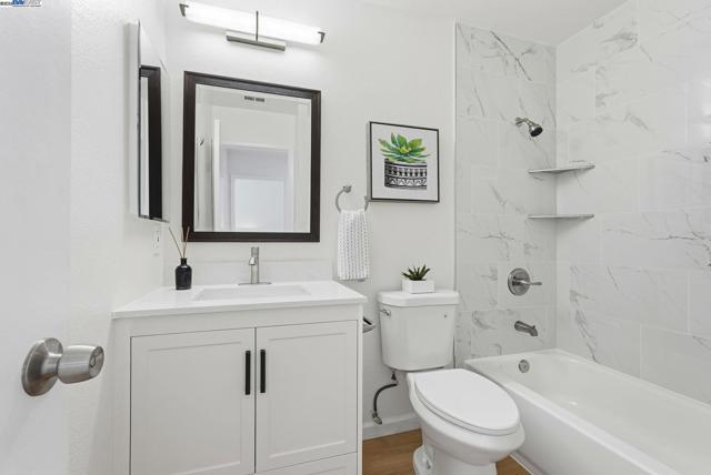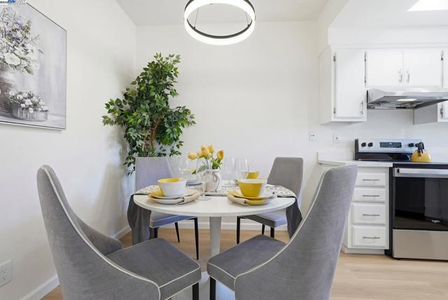 Beautifully Upgraded Downstairs Unit in a Gated Community! The most sought-after downstairs unit features two private balconies overlooking a beautifully landscaped courtyard and pool. Enjoy over $50,000 in recent upgrades, including new recessed lighting throughout the living room and bedrooms, new ceiling lights in the kitchen, dining area, hallways. This home offers high ceilings, dual-pane windows and sliding doors, new blinds, and spacious closets. Relax on either of the two large patios — one at the entrance and another off the primary bedroom. In-unit washer/dryer included for convenience. Both bathrooms have been stylishly updated with new tubs, shower walls, vents, and lighting. The hallway bathroom also has a new vanity, mirror, and tile flooring. Additional home-wide improvements include new waterproof PVC flooring, fresh interior paint, and brand-new appliances — stove, hood, and dishwasher. Community amenities include a swimming pool, spa, BBQ/picnic area, and basketball court. The low HOA fee ($370/month) covers water, sewer, garbage, and common area maintenance. Includes two assigned parking spaces plus ample daytime guest parking. Fantastic location, close to BART, major freeways, and within walking distance to Union Landing’s theater, restaurants, Target, Walmark