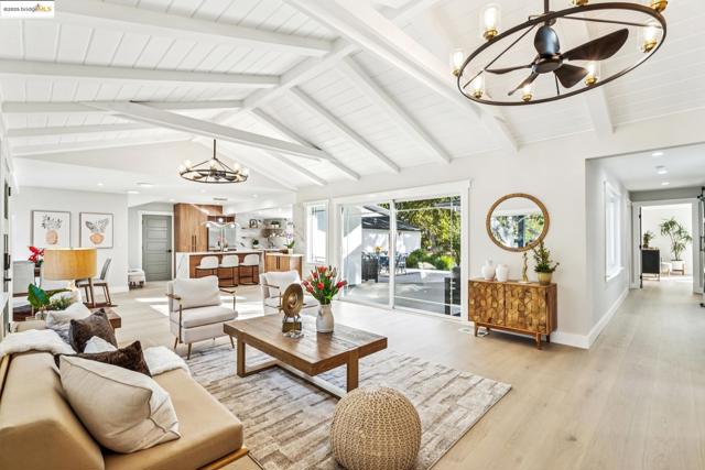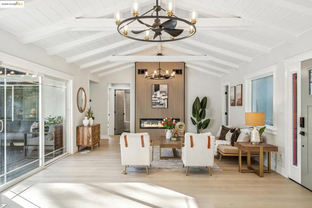 Nestled in one of Walnut Creek’s most desirable neighborhoods—just moments from downtown, top-rated schools, and easy freeway access—this single-level home blends modern design, comfort, and craftsmanship. White oak engineered floors flow through an open-concept layout connecting the living, dining, and entertaining areas. The chef’s kitchen features designer cabinetry, premium finishes, and Monogram appliances—ideal for everyday living or elegant gatherings. The primary suite is a serene retreat with French doors to the backyard and a spa-inspired bath with dual vanities and a stunning wet room. With four spacious bedrooms, a dedicated office, and a two-car garage, the home combines luxury and livability—with additional driveway parking for an RV, boat, or extra vehicles. Set on a half-acre resort-style lot, the outdoor space is built for entertaining, featuring a bocce court, a new guest house with a kitchenette and spacious bathroom, an outdoor kitchen and bar area under a louvered pergola, plus a charming playhouse or studio. Every detail reflects timeless California elegance—offering the ultimate in modern living an