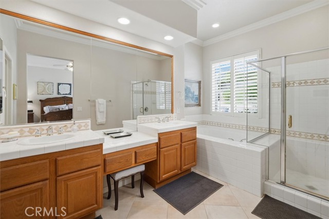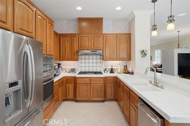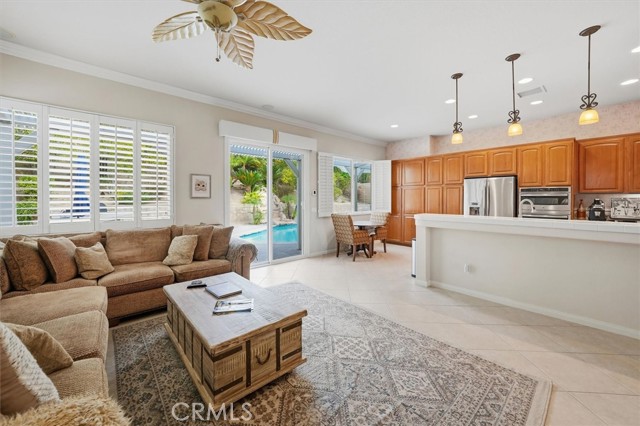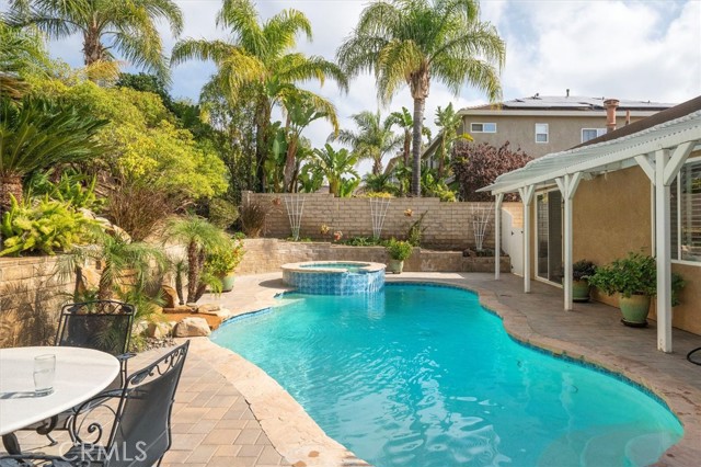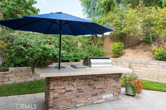 A rare opportunity to own a pristine single-story “Canyon Ridge” pool home offering elegant interiors, a private cul-de-sac setting, and a backyard built for entertaining. From its charming covered porch entry to the resort-style backyard, this residence blends comfort, sophistication, and livability. Inside, soaring ceilings, abundant natural light, and elegant crown molding highlight the thoughtfully designed floor plan. The formal living and dining rooms transition seamlessly to the inviting family room with a cozy fireplace—perfect for everyday living and entertaining. The upgraded kitchen features stainless steel appliances, generous pantry storage, and a sunny dining nook with access to the patio. A spacious front office provides the ideal work-from-home setup or can double as a guest room. The luxurious primary suite offers sliding door access to the pool and patio, a fireplace with media niche, a large walk-in closet, and a spa-inspired bath with dual sinks, a vanity, walk-in shower, and jetted soaking tub. Two additional bedrooms share a beautifully appointed full bath. A built-in computer niche and a laundry room with sink and cabinetry add everyday convenience. Thoughtful upgrades include custom tile and laminate flooring, recessed lighting, dual-pane windows, plantation shutters, retractable blinds, leaded glass accents, built-in cabinetry, upgraded fixtures, and a newer HVAC system. The backyard is an entertainer’s paradise featuring a sparkling pool and spa with a custom rock waterfall, lush landscaping, a covered paver patio with speakers, a built-in BBQ with sink, refrigerator, and side burner, a fenced pool equipment area, custom slump-stone planters, epoxy garage flooring, and dual dog runs. Located near highly rated schools—including award-winning Saugus High School—plus community pools, parks, shopping, and dining, this home truly offers the best of California living. This is an ABSOLUTE dream home at a dream price!