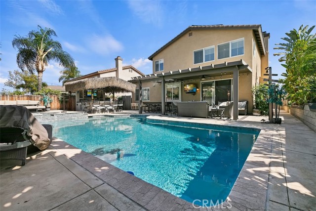 YOUR PRIVATE, TROPICAL, ORANGECREST RESORT AWAITS...LUXURY LIVING, ENTERTAINERS' DREAM BACKYARD & ENERGY SAVINGS IN THIS HOME! ***$15,000 GRANT THROUGH HOUSE AMERICA FOR QUALIFIED BUYERS FOR THIS HOME! This 4 Bedroom (Potential for 6, with 2 flex rooms located Downstairs with its Full Bathroom) Features Custom Paint, Commercial Grade Plank Flooring, Plantation Shutters Throughout, Quartz Counters, 2 Kitchen Islands, Crown Molding, Baseboards, Designer Lighting Fixtures, Newer Primary Bathroom with a Seamless Shower /Rain Showerhead & Soaking Tub. This Backyard Oasis Features a Newly Renovated Pool/Spa, Tiki Hut Outdoor Kitchen/BBQ/Bar with Alumiwood Patio Cover & Fan. This Home features 2 Tankless Water Heaters, Ceiling Fans, Loads of Light & Upgrades, & No HOA. PAID-OFF SOLAR PANELS for Savings! This Home is in a Prime Location Close to Tops Schools, Parks, Shopping, & Churches. This Home is The Perfect Blend of Style, Comfort & Elegance. Don't Miss it!!!***