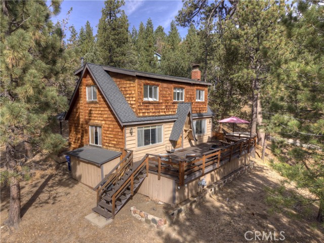 Big Bear Cabin for Sale Near Bear Mountain with Dual Parcels & Peek-a-Boo Ski Slope Views A timeless Big Bear mountain cabin surrounded by tall pines, this inviting 3-bedroom, 3-bath home captures the essence of mountain living. With approximately 1,320 sq. ft. of cozy interior space, the home features warm wood finishes and a beautiful natural stone fireplace that anchors the living area. Step outside to an expansive deck where you can unwind among the trees and enjoy peaceful forest surroundings with peek-a-boo views of the Bear Mountain ski slopes. The property spans over 24,000 sq. ft. and includes two separate assessor parcels, each with its own address and utilities—offering endless possibilities for expansion or development. A level building pad is already in place at the top of the driveway, ideal for a guest house or future build. Located just minutes from Bear Mountain Ski Resort, golf, hiking trails, and mountain biking, this home combines classic cabin charm with rare investment potential—a perfect year-round retreat in the heart of Big Bear Lake, California.