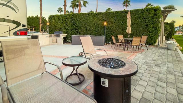 Outdoor Resort Indio is a Class A only RV resort.Located in a prime golf course setting at Outdoor Resort Indio, Lot 50 offers a beautiful blend of comfort, scenery, and future potential. Enjoy sweeping views of the golf course, lake, and mountains right from your patio, with easy access to the Phase 1 golf course entrance just steps away. This motorcoach lot features paver enhancements for extra outdoor living space, mid-lot RV hookups for convenient coach placement, landscaping, and outdoor seating to relax and soak in the scenery. A small built-in BBQ kitchen provides the perfect setup for outdoor dining, and with its desirable location and layout, this property is also an excellent candidate for a future casita build. Just a short walk to the clubhouse, cafe, fitness center, and pool, this lot delivers a premium resort lifestyle in a highly sought-after golf course location.