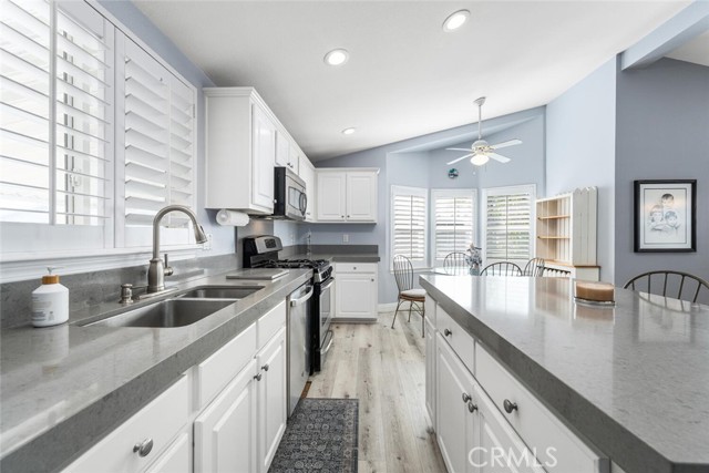 Sitting pretty in highly desirable Rancho del Rey Mobile Estates! A 55+/18 age gated community nestled in the area of Huntington Harbour. Convenient to shopping, sandy beaches, freeways, restaurants, wetland hiking trails, Iconic Huntington Beach Pier and Surf City Main Street attractions and much more. This 2006 Silvercrest “Advantage” model checks all the boxes. Situated in an upscale area in a prime corner lot, interior location that offers nearby guest parking. Interior features include a bright and open floorplan, high ceilings boasting numerous skylights, recessed lighting with a Tray ceiling in the living room, laminate flooring throughout, formal dining area, plantation shutters, raised panel interior doors and ceiling fans. The spacious kitchen features an Island with Quartz countertop and lots of underneath storage that offers convenient pullout drawers. Other kitchen amenities include stainless appliances, a separate space for a breakfast table and chairs, high ceilings and an abundance of cabinets and a pantry with pullout drawers. Adjacent to the kitchen there is a very spacious laundry room that provides a sink basin, lots overhead storage cabinets and more pantry space. The very spacious master bedroom offers a giant walk-in closet, tasteful laminate flooring, plantation shutters and ceiling fan. The Master bath features dual sinks, jetted soaking tub and a separate walk-in shower that offers built-in seating and safety grab bar. Exterior features include hard to find private patio deck, storage shed, and oversized corner lot with stylish landscaping that provides stellar curb appeal and added privacy. Coastal living awaits your arrival so now is your chance to take advantage of a home that has so much to offer in one of Orange Counties finest communities.