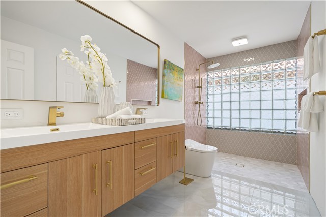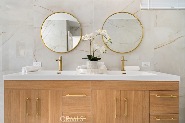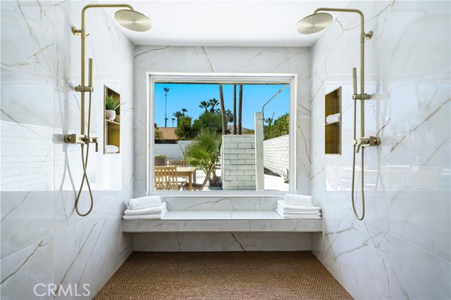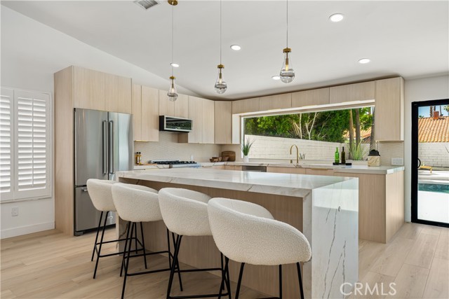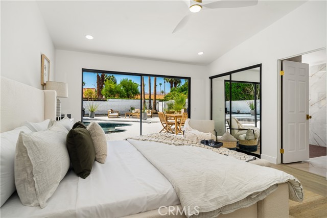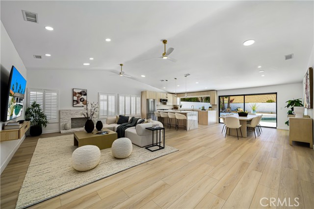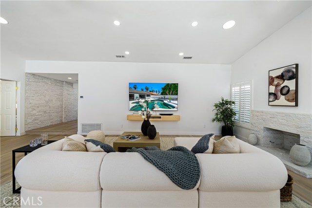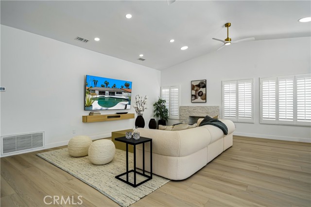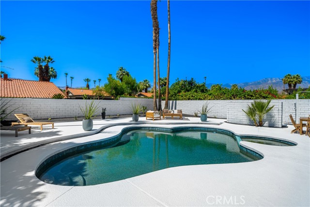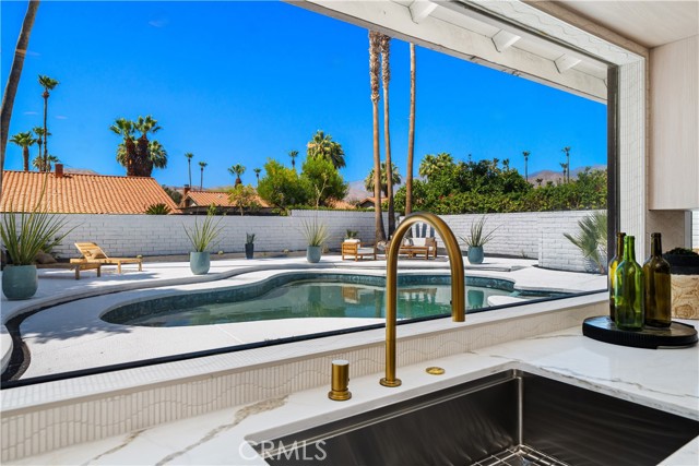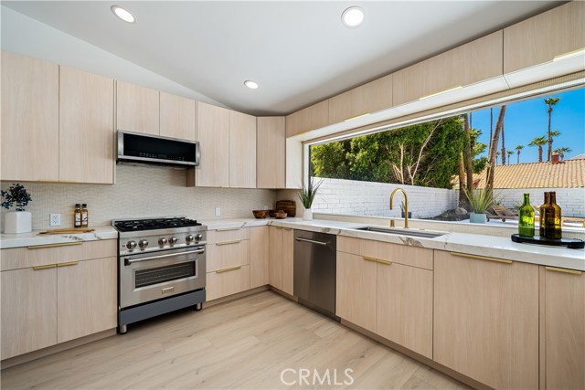 Experience desert living redefined—an exceptional renovation where elevated design meets architectural artistry. Every inch of this home reflects premium construction, bespoke finishes, and modern desert sophistication seldom seen at this price point. A fully custom residence in a quiet, no-HOA neighborhood, it offers the perfect blend of privacy and convenience—just moments from the heart of Rancho Mirage and Palm Springs. A 30-foot marble walkway welcomes you, setting the tone for the home’s craftsmanship. Step down into an open-concept living area with vaulted ceilings, smooth-finish drywall, and wide-plank white oak LVP flooring. Perfectly positioned on a large South-facing lot (with plenty of room for an ADU), the space is filled with natural light by day and enhanced by dimmable LED lighting at night. The chef’s kitchen is a true centerpiece, showcasing a professional-grade ZLINE dual-fuel range, waterfall-edge island with wine fridge, and a 10-foot architectural window overlooking the backyard. Custom white oak cabinetry with 9-ply birch boxes, luxury quartz by Tile Designs by Fina, European brass fixtures, and a limestone backsplash complete this designer-curated space by local designer Nicholas Lawson. The primary suite features a spa-inspired bath wrapped in designer tile, a walk-in shower with dual solid-brass towers, and a picture window overlooking the private yard. Copper penny tile flooring with copper glass grout adds a refined touch. Both bathrooms include smart toilets with bidets, walk-in showers, and double sink vanities with solid brass fixtures. Expansive 10-foot sliders open to a private backyard oasis with PebbleTec pool, tiered entertaining zones, and a cool-tech coated pool deck framed by stunning San Jacinto Mountain views. A new 18.5 SEER2 high-efficiency heat pump with a 10-year warranty ensures lasting comfort. Close to Cotino – Disney’s Storyliving community, world-class golf, dining, and shopping, this home delivers luxury desert living without compromise. Staging available for purchase.