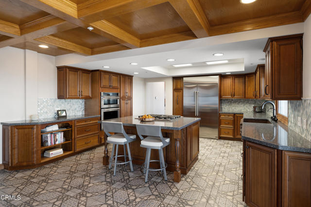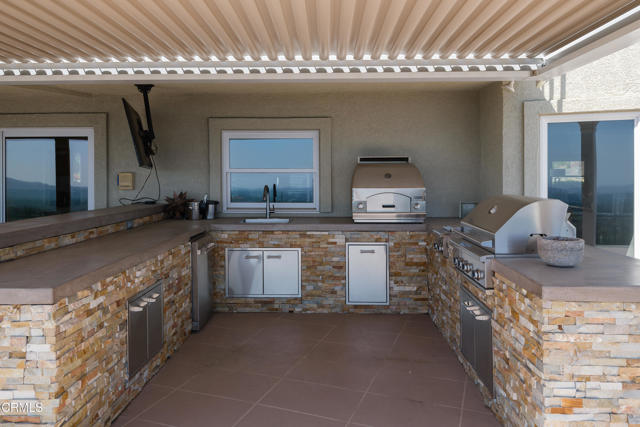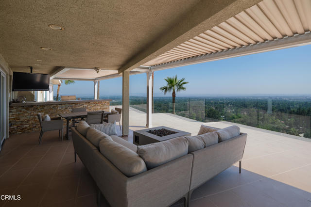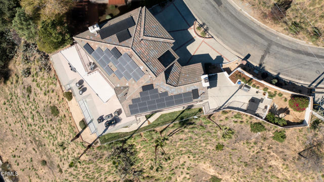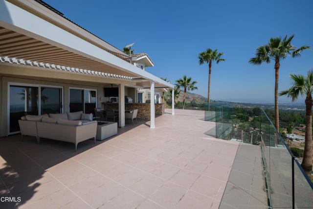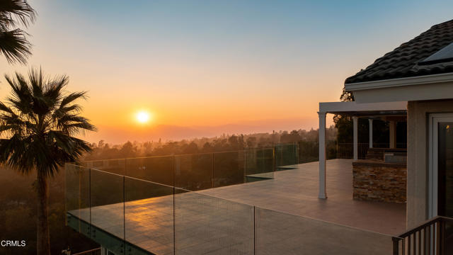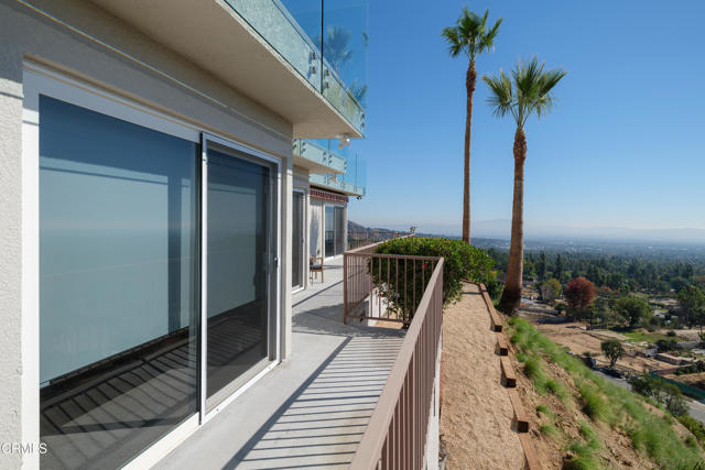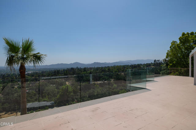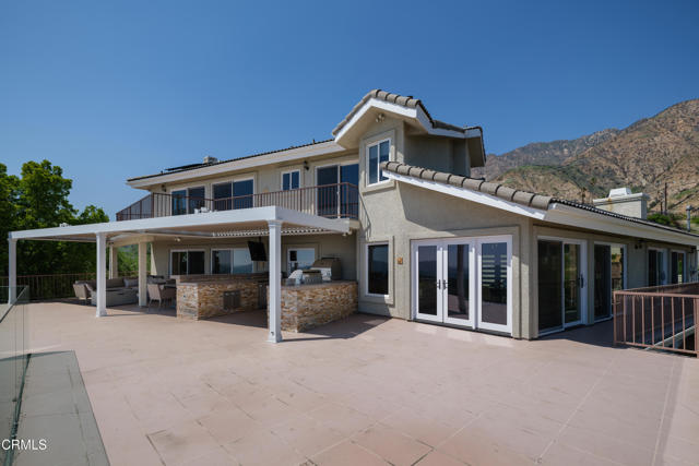 As you enter this serene enclave in the foothills of the San Gabriel Mountains, you feel the frenetic energy of the city below slip away. Impressive modern double doors open to reveal a light-filled, open floor plan and breathtaking views of the Los Angeles basin stretching all the way to Catalina Island. This entire property is designed with a seamless indoor-outdoor flow to take full advantage of those spectacular views and its privileged hilltop location in an area brimming with natural beauty, hiking trails, and wildlife. This tri-level home has been extensively remodeled. The living room and dining room feature cathedral ceilings, walls of wood-frame sliding glass doors, and hardwood floors. The tastefully designed kitchen is a chef's dream with custom cabinetry, quartz countertops, a copper sink, and premium stainless-steel appliances. An open floor plan connects the kitchen to a comfortable family room, highlighted by a coffered wood ceiling and stone fireplace. The family room opens onto a sprawling entertainer's deck, offering views that have to be experienced in person. This luxury outdoor living space boasts a motorized louvered pergola, outdoor kitchen with a built-in barbecue, refrigerator, and even a LYNX Napoli pizza oven for sunset pizza parties. A discreet elevator takes you from the main floor to the upper floor, where you'll find the gorgeous, expansive primary suite with glass doors leading to an upper deck with breathtaking views. This fully remodeled retreat includes a stunning stone fireplace and a spa-like bathroom with a vast marble shower with rain shower heads, a heated floor, walnut cabinetry, double sinks, and a walk-in closet. A second en suite bedroom completes the upper floor.The lower level features three additional en-suite bedrooms, with sliding glass doors leading to the lower deck, which offers sweeping views of the valley.Practical luxuries throughout keep life organized, comfortable, and healthy. A dedicated laundry room includes a newer washer and dryer. Environmental controls include a three-zone heating and air conditioning system, alarm, water filtration, a water softener, solar panels, two Tesla Powerwalls, and a Level 2 10 kW EV charger in the garage. This stunning sanctuary offers a rare blend of natural beauty, world-class vistas, and easy proximity to Pasadena, Burbank, and LA.