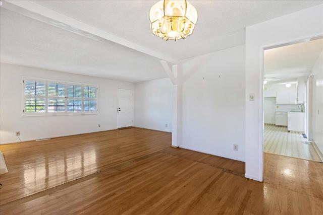 Welcome to this charming 4-bedroom home located in the Union Elementary School District. 1,242 sf on 7552 sf corner lot. The heart of the home is the functional kitchen, which seamlessly integrates with the eat-in dining area, perfect for casual overlooking the backyard. Separate family room provides ample space for relaxation and entertainment and ambiance from the fireplace. The 4th bedroom wall was removed to add a larger family room or dining room - you choose. It can easily be turned back into a 4th bedroom. New Furnace & Central A/C. Roof is 10-15 approx years old. This home features a variety of amenities including central forced air heating and ceiling fans to keep comfortable throughout the year. Enjoy the warmth of the fireplace in cooler months. The flooring is a blend of tile, vinyl and wood, adding both comfort and elegance to your living space. Practicality is highlighted with the in-garage laundry facilities, making chores convenient and efficient. With 2 full bathrooms featuring both shower and tub options, this home meets the needs of all family members. This property also includes a 2-car garage, providing ample parking and storage solutions. The spacious backyard boasts a covered patio and large yard to add ADU etc. Come and make this home yours!