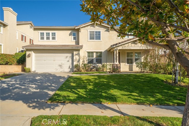 Immaculate and impeccably maintained, this stunning two-story residence seamlessly blends comfort, style, and functionality. As you enter the spacious formal living and dining room, you’re greeted by soaring ceilings and the first of two fireplaces, creating a grand yet inviting atmosphere — the perfect place to celebrate the holidays with plenty of room for your Holiday tree. The chef’s kitchen is a true showstopper, featuring upgraded granite countertops, a large rectangular center island, ample cabinet space, and all appliances included. A cozy breakfast nook opens to the great room, where the second fireplace offers a warm and welcoming space for family and friends. A guest bedroom and full bath downstairs provide ideal comfort and convenience for visitors. Upstairs, the loft serves as the perfect media room, home office, or study area. The primary suite is a relaxing retreat, complete with a spacious walk-in closet, spa-like soaking tub, separate shower, and dual vanities. Step outside to a beautifully sized backyard, ideal for outdoor entertaining or peaceful relaxation. Additional highlights include a kid-friendly cul-de-sac, a four-car tandem garage, and convenient proximity to top-rated schools, parks, and Victoria Gardens shopping and dining. Come see this beautiful home for yourself — you’ll absolutely fall in love!