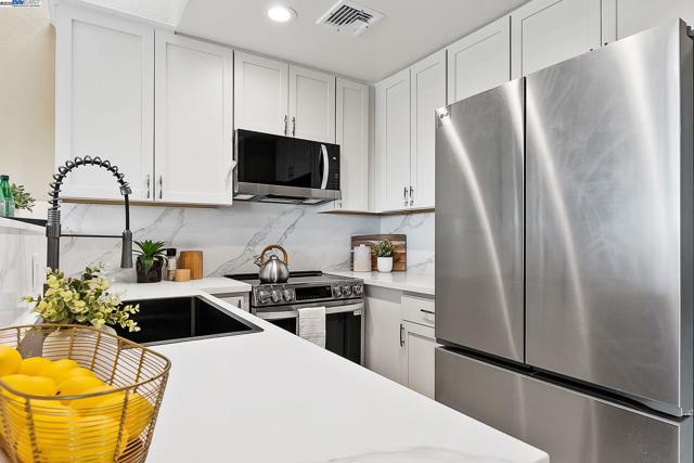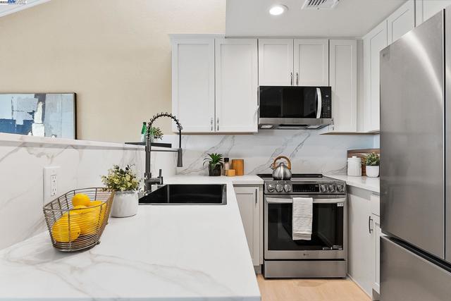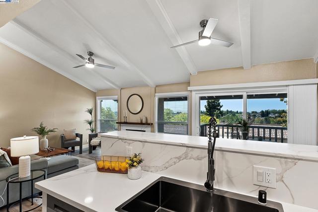 Welcome to this spacious and beautifully updated 2-bedroom, 2-bath townhouse tucked away in a quiet cul-de-sac, surrounded by mature trees and lush, park-like grounds that create a truly serene setting. The home features an open floor plan with vaulted ceilings, exposed beams, and abundant natural light. Enjoy modern upgrades including stainless steel appliances, new cabinets, and updated flooring throughout. Step out onto a private deck from the living room—perfect for relaxing or entertaining. Additional highlights include a newer Heating system and water heater, a 2-car garage, and access to resort-style community amenities including a pool and clubhouse. Conveniently located near major transportation, shopping, and freeway access, this home offers a rare blend of comfort, style, and a uniquely tranquil atmosphere.