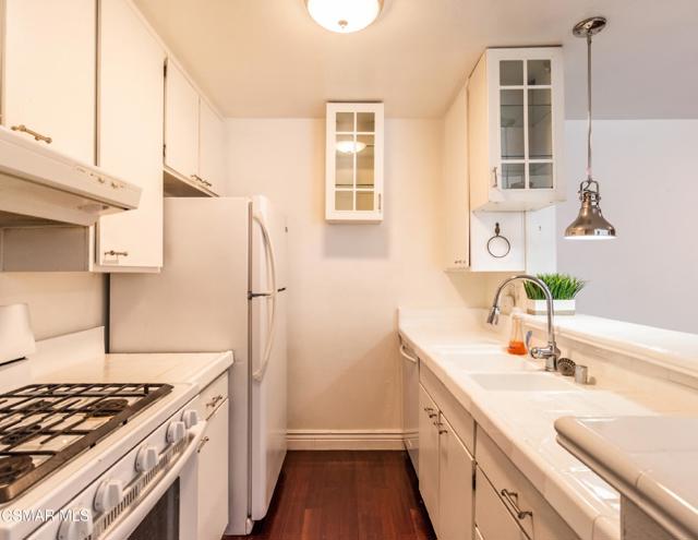 This bright and inviting one-bedroom condo sits in the gated community of California Place. The open living area features high ceilings and skylights that fill the space with natural light, while the private balcony offers a quiet spot to unwind. The kitchen has updated countertops and comes equipped with a refrigerator, dishwasher, and oven. The bedroom is generously sized with plenty of closet space. Enjoy the community's pool, spa, recreation room, and small gym. The unit includes two parking spaces, plus access to the on-site laundry facility. Small pets under 30 pounds are welcome. Conveniently located near Gelson's, Whole Foods, LA Fitness, and Peet's Coffee, with easy access to the 101 Freeway.