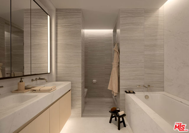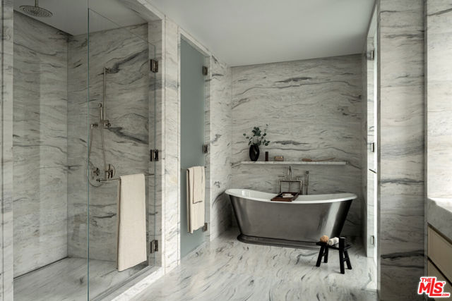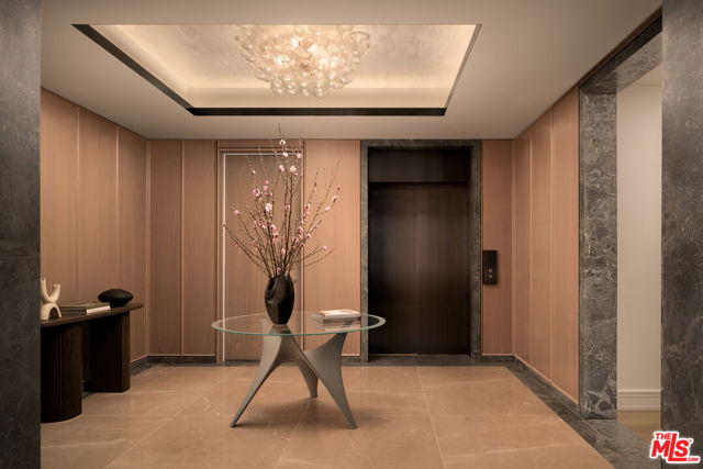 Residence 2F, a singular offering among just six estate-like homes with private pools at Rosewood Residences Beverly Hills, promises unprecedented privacy, generosity of space, and an experience enriched by the meticulous, personable service for which the Rosewood brand is renowned. A discreet porte-cochere cobblestone entrance assures an intimate arrival away from the boulevard, whereupon valet and concierge initiate an effortless way of life. An elevator leads directly from either the garage or the boutique lobby and into an impressive stained-walnut foyer for receiving guests. From here, proceed uninterrupted through the formal living room with fireplace to the outdoor spaces and discover the only-of-its-kind in-ground pool and spa, making the lifestyle of Residence 2F truly distinctive. Floor-to-ceiling windows welcome natural light into the floor-through layout. Walls of glass retreat to provide a breezy, indoor-outdoor flow from each living space to the next, accented by chevron floors and Art Deco crown moulding accents. The smartly equipped kitchen, featuring custom millwork designed by world-renown architect Thomas Juul-Hansen and crafted in Milano by Molteni&C, includes two oversized waterfall islands dressed in honed white Dionysos stone, state-of-the-art Sub-Zero and Wolf appliances, and adjacent butler's pantry. Throughout its museum-quality halls, no detail is unnoticed; every moment refined. Each wash basin is carved from a single slab of marble imported from the same quarries that bore the legendary Parthenon. The primary suite includes a breakfast bar as well as two walk-in closets, and all main bedrooms offer direct access to the private terrace, complete with outdoor kitchen and fireplace. For convenience and versatility, a secondary service elevator opens into a back-of-house service room with lock-off for additional culinary preparation, laundry, and deliveries. Premier world-class amenities include a house car and rooftop with a 50-foot pool, spa, Technogym, bar, kitchen and dining for entertaining, living room, barbecue, cabanas, and spectacular vistas of surrounding treetops, high-rises, and mountains beyond. Those who live at Rosewood Residences Beverly Hills gain VIP, priority access to the rarefied world of Rosewood, whose collection of preeminent hotels and residences includes The Carlyle in New York and Hotel de Crillon in Paris. Rosewood is defined by its impeccable and personal approach to service: Associates get to know each resident as an individual, to best cater to their needs and create everyday moments of magic, and Rosewood Residences Beverly Hills is no exception. A full-time concierge and staff of Rosewood-trained professionals includes a dedicated Director of Residences, tasked with curating a life well lived and a high-touch experience unlike any other. Staff includes armed security. At last, a new bar is raised, and the luxury condo market in Los Angeles is forever transformed.