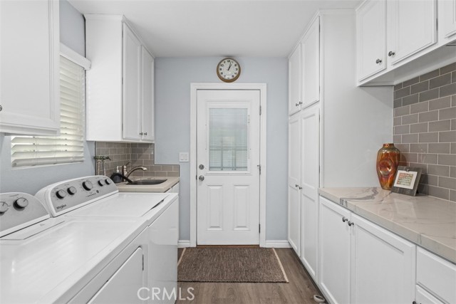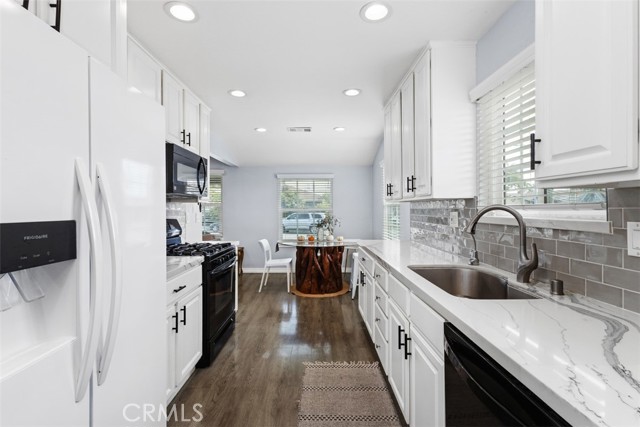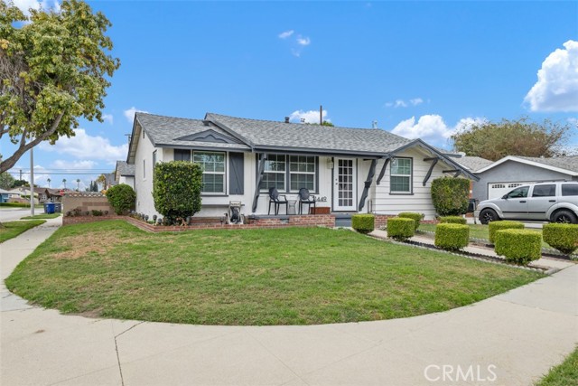 Fantastic purchase opportunity on this immaculate, TURN-KEY 3-bed 2-bath home on a corner lot with great curb appeal! This home is located on a quiet cul-de-sac street, in one of Lakewood’s most popular neighborhoods. Enter the home to enjoy a cozy great room where you can relax or entertain. The fully-remodeled kitchen and breakfast nook are flooded with natural light, creating a perfect environment you will love to cook in and dine together with loved ones. Upgrades in the kitchen include quartz countertops, subway tile backsplash and recessed lighting. Super spacious primary bedroom enjoys the most privacy and another tastefully remodeled ensuite bathroom with custom tile works and a walk-in closet. Nice size second and third bedrooms have ceiling fans, mirrored wardrobe doors and a walk-in closet. Both the primary bedroom and laundry room open up to the backyard, which has both a hardscaped area and a well maintained green lawn perfect for entertaining. Lastly, the two-car detached garage faces the adjacent street for convenient access. All upgrades have been done in recent years and include a repipe, newer roof, dual-pane windows, electrical, HVAC, luxury vinyl floors throughout, and plantation shutters. Excellent location near the 605 and 405 freeways and upscale shopping centers, and within the boundaries of the prized ABC Unified School District. This home truly checks off all the boxes and offers an unbeatable combination of charm and value. Don't miss out!