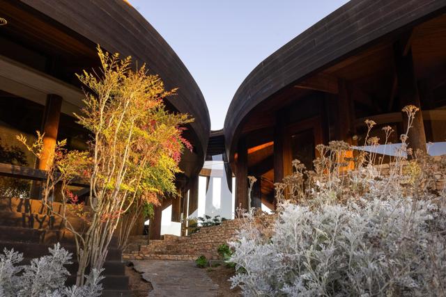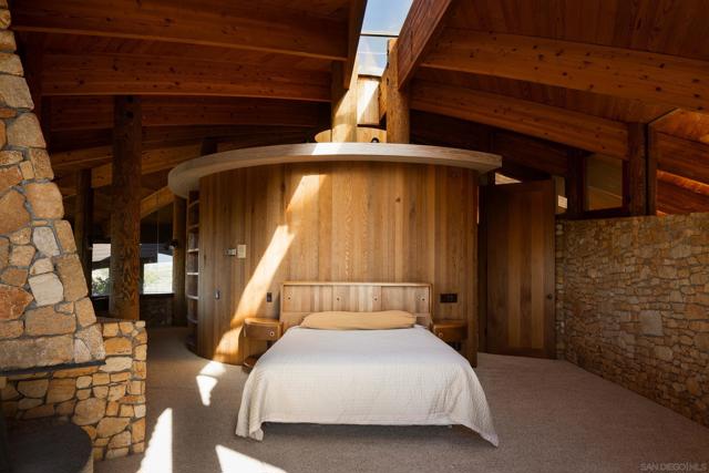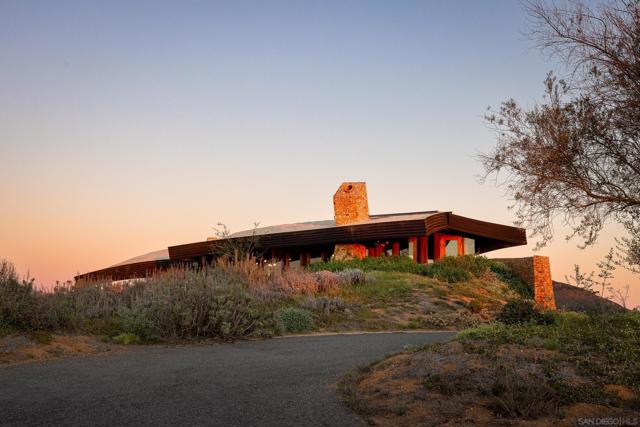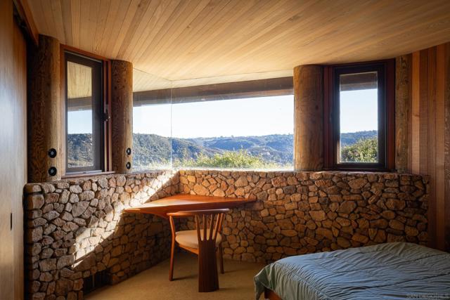 FIRST TIME ON THE MARKET: Recently featured by Architectural Digest, this masterwork by San Diego architect Kendrick Bangs Kellogg resides high atop Valley Center offering 360-degree views. Constructed between 1984-1993, this home and landscape offers an array of intimate moments and spaces scaled for everyday living. Inspired to return to their agrarian roots, in 1972 the family purchased a 40 acre plot and planted over 900 avocado trees. Designed by the architect in 1984, the home of glass and wood with rock walls sourced from the surrounding property took 6 years to build. Nestled amongst the avocado grove, the home’s high perch lends itself to breathtaking 360 degree views of the area through the floor to ceiling windows. With 5 bedrooms and 3 bathrooms, as well as two fireplaces and custom woodwork throughout, this home captures some of Kellogg’s most inspired work, blurring the line between nature and home, between architecture and sculpture.