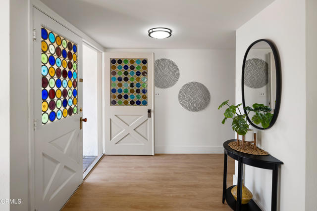 Secluded in the peaceful hills of Glendale bordering La Canada Flintridge and tucked away toward the end of a quiet cul-de-sac, this one-owner home is on the market for the first time since it was built over 60 years ago. Serene living surrounded by scenic views, this charming pocket is calling you home. An inviting curb appeal is on display with freshly laid grass and a professionally landscaped design framing the brick-paver driveway that leads you to a graceful double-door entry. A bright and airy interior thoughtfully updated with new luxury vinyl plank flooring and modern touches throughout welcomes you. To the right of the entry, the spacious living room is anchored by a classic fireplace and mantle, a perfect focal point for cozy evenings or quiet moments at home. Oversized windows allow sunlight to pour in, creating a warm and comfortable setting that blends effortlessly into the adjoining dining area. The kitchen is a wonderful balance of functionality and comfort, featuring a tiled eat-at bar countertop, recessed LED lighting, a four-burner gas cooktop, a wall oven, a dishwasher, and a convenient in-kitchen laundry area. French doors extend the living space outdoors, leading to a spacious patio where morning coffee or evening gatherings can be enjoyed beneath the covered portion or in the open-air section surrounded by expansive hillside and neighborhood views to the north. Down the hallway are three well-proportioned bedrooms, each offering new carpeting and generous closet space. The full hallway bathroom includes a tub and shower combination and a single-sink vanity, while the primary suite is a tranquil retreat of its own. The suite features a large window framing lush backyard views, a walk-in closet, and an ensuite bath with a tiled shower enclosure and an oversized single-sink vanity. Outdoors, the backyard provides the perfect canvas for relaxation or entertaining, whether hosting intimate dinners, gardening, or simply taking in the peace of the setting. This home captures the beauty of hillside living while being conveniently close to local attractions like Chevy Chase Country Club, shopping, and dining, offering the perfect blend of comfort while still maintaining a wonderful sense of seclusion and calm. Peaceful, private, and filled with natural light, this Glendale home is ready to welcome its next chapter.