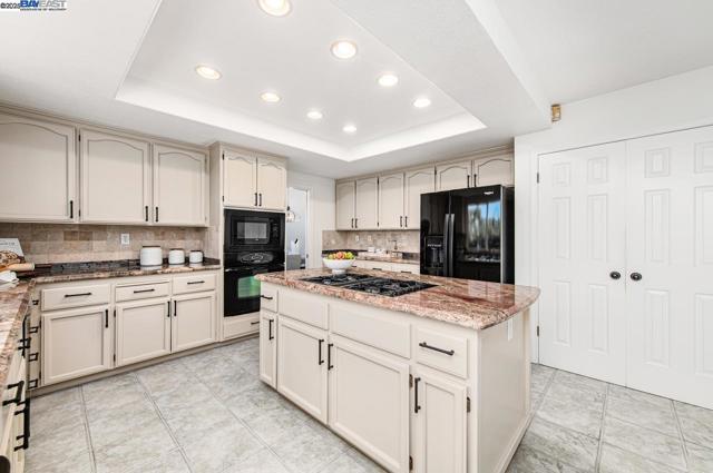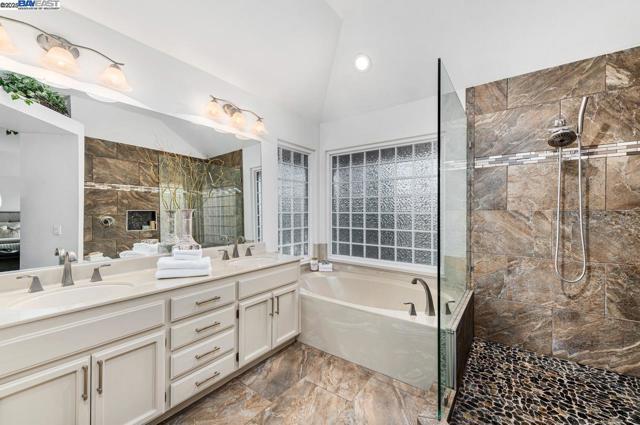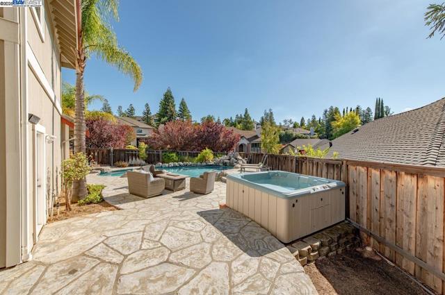 Tucked away at the end of a quiet cul-de-sac, this beautiful Vintage Heights semi-custom home welcomes you with a grand iron door that sets the tone for the style and sophistication within. The spacious 2837 sq. ft. floor plan features cathedral ceilings, spacious living room and formal dining, tile floors, a sweeping iron staircase, and abundant natural light. The heart of the home is the wonderful kitchen—complete with stone counters, large center island, custom cabinetry, and a charming breakfast nook overlooking the backyard. It’s the perfect gathering space for morning coffee or lively evenings with friends. The inviting family room opens to a serene backyard retreat featuring a private pavered patio and a sparkling pool—ideal for summer entertaining and relaxed outdoor living. Elegant primary suite offers sweeping views of Mt. Diablo and a spa-like bathroom with a walk-in shower, large tub and generous closet space. There is an open landing that's perfect for home study. Spacious secondary bedrooms. Located in one of Pleasanton’s most sought-after neighborhoods, this home combines luxury, comfort, and an unbeatable location—close to top-rated Pleasanton schools, parks, and the vibrant downtown lifestyle Pleasanton is known for. Close hiking trails and wineries