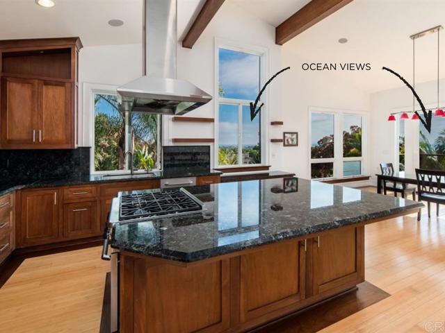 VIEWS! VIEWS! VIEWS! Nestled on the coveted west side of one of Olde Carlsbad's most desirable streets, 2705 Highland Drive is your gateway to elevated SoCal coastal living. Imagine a lifestyle defined by easy access to the beach and vibrant Carlsbad Village, with an array of dining, shopping, and entertainment offerings just minutes away. Best of all, come home to enjoy 180° ocean views as you take in breathtaking sunsets from your main living area or decks! This 2011 custom build features incredibly strong bones, with 4 bedrooms, 4 bathrooms, and approx. 2723 square feet in the main house. The sun-drenched interiors are highlighted by vaulted ceilings, warm bamboo flooring with elegant mahogany accents, and high-end appliances. Enjoy the ultimate indoor/outdoor flow with expansive views extending from the main living areas—the kitchen, dining, and family rooms—and across multiple decks. Outside, you have your very own island paradise, surrounded by swaying palms, lush landscaping, and room for a pool. The extra deep garage allows for 2 cars plus all your boards, bikes, toys and tools. A rare and valuable feature of this property is the detached ADU with 1 bedroom and 1 bathroom. This private, approximately 450 sq ft sanctuary offers its own kitchen, laundry hookups, and private entrance, while presenting various solutions for multi-generational living, a premium rental income stream, or a dedicated, executive-level home office/studio. Maximize your investment potential at this prime location in a classic beach community. ***Please check back for UPDATED photos***