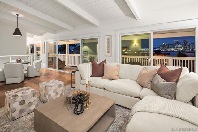 Amazing opportunity to own a distinguished residence on the highly desirable 1st st in Coronado. This home features a versatile floor plan, perfect for diverse lifestyles and entertaining. Upon entering the first floor, you'll find a spacious Guest quarters complete with a living/dining area, kitchenette, a generously sized bedroom with walk-in closet, full bath, and a serene private patio—ideal for visitors or extended family stays. The main living quarters is upstairs, where the expansive living, gourmet kitchen and dining room opens to a breathtaking 50-foot balcony that runs the full length of the home, offering unobstructed panoramic views of the bay and city skyline. The master suite is a tranquil retreat with its own bath, complemented by a well-appointed guest bedroom and bath. Additional features include back stairs and a second-floor balcony, enhancing the home’s accessibility and charm. This residence not only offers a remarkable living space but also a lifestyle enriched by its scenic surroundings and unique architectural design. Make this stunning property your home and enjoy the quintessential Coronado experience.