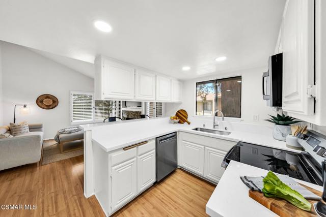 Seller Financing Available! If you've had your sights on Oaknoll Villas, the desirable 55+ community in Thousand Oaks, then you've got to see this stunning two bed, two bath, 1147 SF remodeled penthouse model that's the largest floor plan available. As you enter this bright and spacious home, located on the upper level, you'll immediately notice the vaulted ceilings, light-colored flooring, and the Zen feeling of this remarkable condo. This open floor plan has such a great flow, with the living room and dining room cojoined, then opens to the family room with fireplace, an abundance of windows with shutters, and an updated kitchen with quartz counters, additional seating at the bar, and new dishwasher, stove and microwave. For additional flow, the living room opens to a delightful balcony with tree-top views. Down the hall of this newly painted condo are the refreshed bathrooms with quartz counters, and two very spacious bedrooms with new carpeting. Another added benefit is the inclusion of the stackable washer & dryer in this move-in ready home. Oaknoll Villas has wonderful community amenities including pool, spa, clubhouse, gym, billiard room, card room, shuffleboard courts, yoga room, butterfly garden and dog park. The HOA includes trash, cable/internet, complimentary plumbing service, plenty of guest parking and landscape maintenance. This active senior community is centrally located and very close to nearby parks, Conejo Valley Botanical Garden, shops and restaurants, The Oaks Mall and the Hillcrest Center for the Arts.