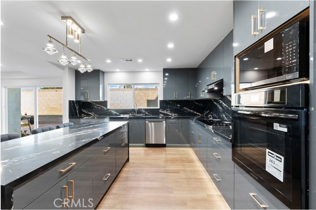Beautifully remodeled Northridge home with an ADU and a pool. Total living area approx. 2,700 sq.ft. featuring 6 bedrooms and 3.5 bathrooms combined. The main house offers 5 spacious bedrooms and 2.5 bathrooms with open living and dining areas, new kitchen with shaker cabinets, quartz counters and stainless steel appliances, updated bathrooms, new flooring, recessed lighting and dual pane windows. The ADU includes 1 bedroom and 1 full bathroom with a separate entrance and its own address — ideal for extended family, home office, or rental income. Private backyard with pool and patio for entertaining. Convenient location close to schools, shopping, restaurants, and freeways.Home features fully paid-off solar panels.