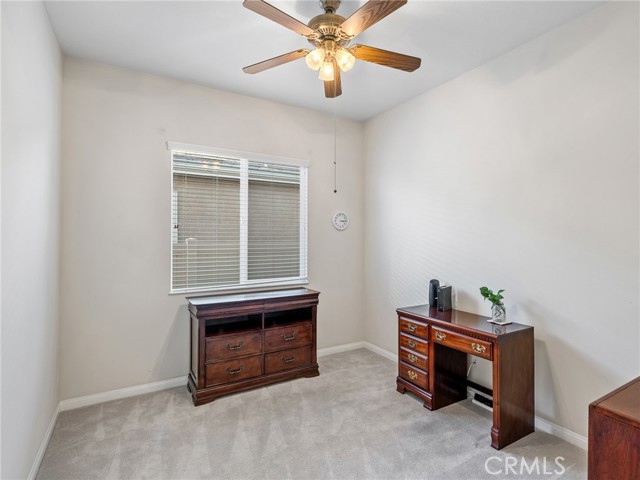 Welcome to your dream retirement oasis! This beautifully maintained home is nestled along the golf course in a serene 55+ community, offering the perfect blend of comfort, style, and resort-like living. Step inside to discover a spacious 2-bedroom plus office, 2-bath retreat spanning 1544 sq. ft. of inviting modern living space. The open-concept layout creates a seamless flow for relaxing or entertaining, while the kitchen shines with elegant countertops and a convenient breakfast bar—ideal for casual dining or mingling with guests. The primary suite offers double sinks, a generous walk-in closet, and tranquil views. The secondary bedroom provides a comfortable retreat for guests, and the bonus office offers a quiet space for hobbies or working from home. Enjoy peaceful mornings or sunset gatherings on your covered patio overlooking the golf course and peace of mind. Plantation shutters throughout and ceiling fans add comfort and style. This vibrant active-adult community offers an abundance of amenities including golf, scenic walking paths, group activities, indoor and outdoor pools, pickleball and tennis courts, fitness classes, and more—everything you need to stay active and engaged. Don’t miss this opportunity to embrace the ultimate in retirement living where luxury, leisure, and community come together in one perfect home.
