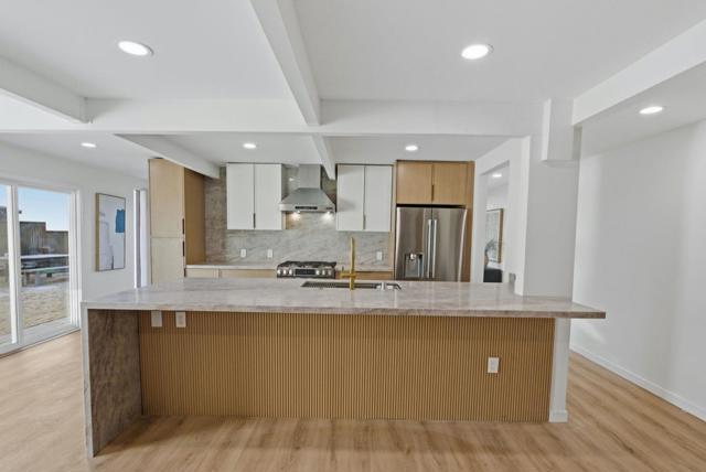 This stunning, extensively renovated 4 bedroom, 3 bath home perfectly blends elegant design with modern functionality. Step inside to discover an open concept floor plan flooded with natural light through expansive floor to ceiling windows, showcasing a seamless flow between the living, dining, and kitchen areas. The gourmet kitchen is a chefs dream featuring high end appliances, quartz countertops, designer finishes, and a large waterfall island that serves as the heart of the home. All bedrooms offer generous closets, while the primary suite provides a serene retreat with a beautifully designed spa like bathroom, custom built in closets, and private access to the backyard. Enjoy effortless indoor and outdoor living on the spacious concrete paver patio and turf area overlooking a private and tranquil yard. The backyard oasis includes a built in fire pit with bench seating and an outdoor chefs kitchen, perfect for entertaining year round. Additional upgrades include new systems throughout including central A/C, furnace, plumbing, electrical, and energy efficient fixtures, ensuring comfort and peace of mind for years to come.