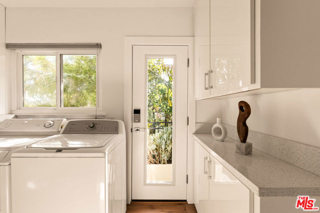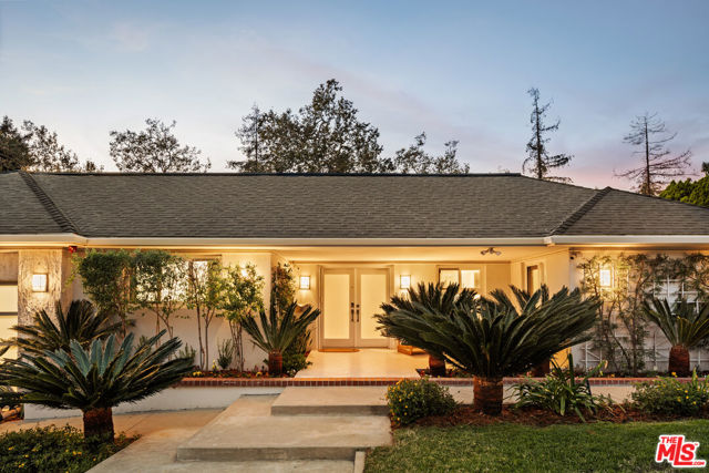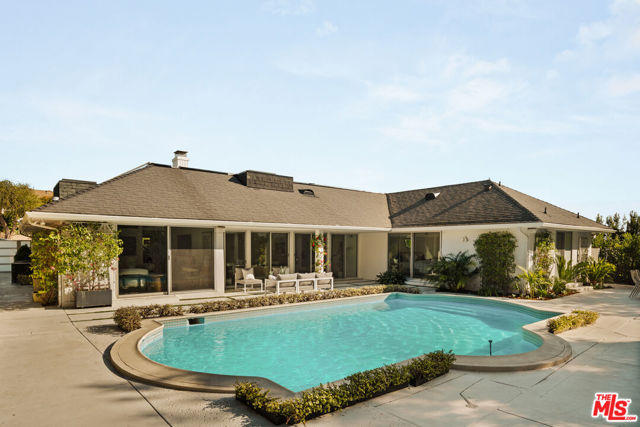 Nestled on the western edge of Griffith Park, this sleek 1964 single-story pool home with an effortless indoor/outdoor flow, is giving Palm Springs vibes in the Los Feliz Estates. Chic double-doors draw your eyes westward toward a sophisticated foyer with sightlines through the step-down living room's wall of floor to ceiling Fleetwood doors, to the heated, shimmering swimmers' pool which overlooks the verdant trees of Griffith Park's Fern Dell, making for a lushly secluded retreat. The open floor plan encompasses a grand living room with a natural flow to the pool and its many lounging areas. A marble and stone hearth anchors the room while the skylights soar above, and wide plank, oak floors tie the entirety of the home together. The kitchen, with its picture window framing outdoor greenery, is illuminated by even more skylights. A cozy breakfast area allows access to the palm-obscured front patio, for coffee, while enjoying the morning sun. Plentiful cabinetry and counterspace complement the vast quartz peninsula with waterfall edge which fluently establishes a connection to the semi-formal dining room. A pool facing convertible den/guest suite with a bath and a secret door complete the northern side of the home. Tucked just off the living room is versatile second bedroom suite which houses the technology/media closet, just across the hallway, a larger bedroom with its verdant view will make you feel like you are miles from the city! A full bath sits right outside its door. The primary suite has swagger! Generous in size, it features a wall of windows welcoming dappled southern light during the day. Sliding doors open to the pool allowing for a clandestine evening dip. The primary bath is a master class of equity! Separated by a sunken Roman tub with shower, each side possesses its own sizeable vanity, large custom closet, and W/C. Naturally, there are sliding doors from the tub to the outside. Swanky! A large, attached garage with utility sink, built-in storage and workbench enters the home through the convenient laundry/mud room. The grounds are tranquil. The understated exterior is graced with vining plants and palms along with established shrubbery, which hinders the view of neighbors, while setting the tone of serenity. Griffith Park hiking trails, the Greek Theater, and the Observatory are easily accessible, while the shops and restaurants on Vermont and Hillhurst are mere blocks away. Some of the many thoughtful upgrades include Velux Skylight and Samsung Smart Home systems. Most rooms are triple-wired with CAT5 data cables. Samsung Frame TVs. Hard-wired speakers throughout the living room and pool area. Central HVAC. The HOA provides a 24-hour Patrol and much more.