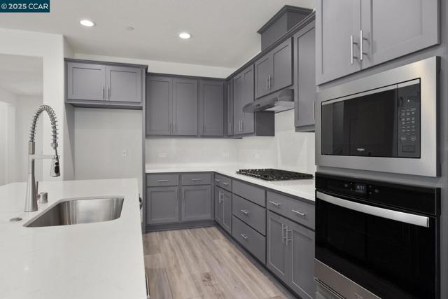 Move-In Ready Luxury at Lumina at Reynolds Ranch – Lot 25 by Signature Homes. Discover your new home by award-winning builder, Signature Homes, where style meets comfort in the heart of Lodi. This luxurious quick move-in home showcases over $38,000 in designer upgrades, offering refined living inside and out. Step inside to find elegant LVP flooring, a gourmet kitchen with navy grey-stained beech cabinetry, quartz countertops with a full backsplash, an upgraded stainless steel appliance package, and a spacious island perfect for gathering and entertaining. Your primary suite is a true retreat, featuring dual vanities, a large walk-in closet, and a soaking tub with a separate shower for the ultimate in relaxation. Enjoy California’s best indoor-outdoor living with the California Room, ideal for relaxing or hosting. Energy efficiency shines with owned solar, helping you live beautifully and sustainably. Located just moments from grocery stores, retail, and dining, and a short drive to downtown Lodi and the scenic Lodi Lake, this home puts everyday conveniences and weekend adventures at your doorstep.