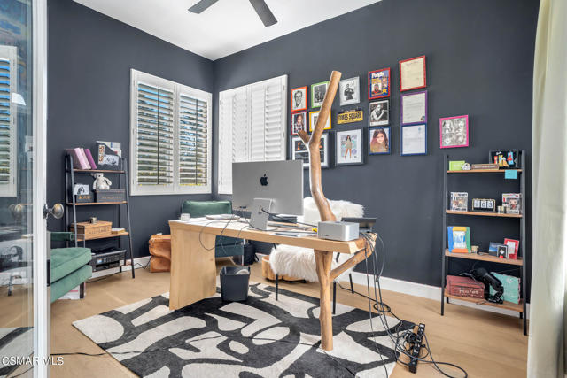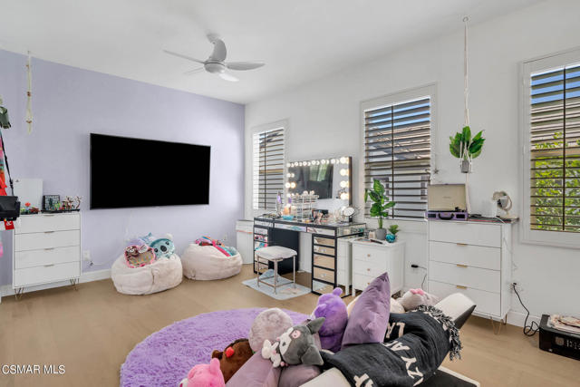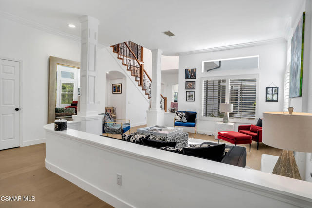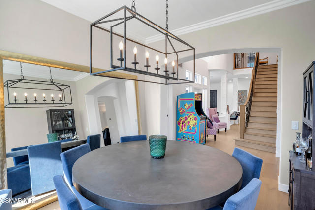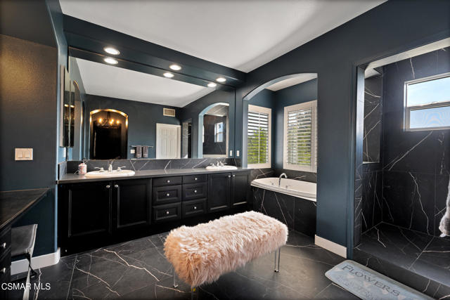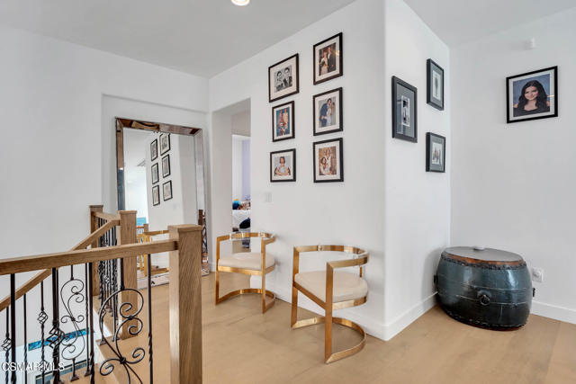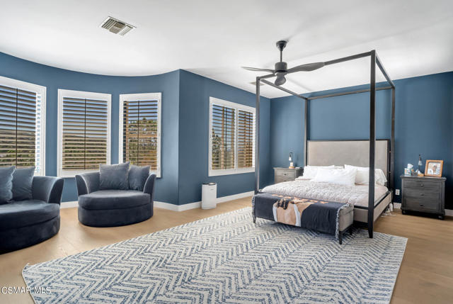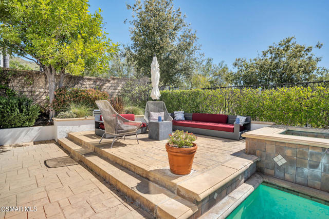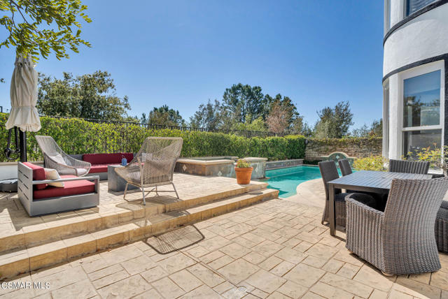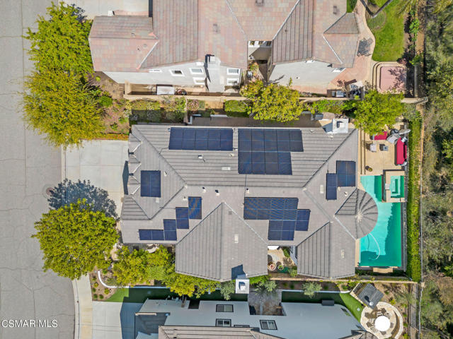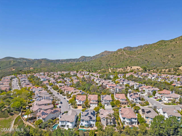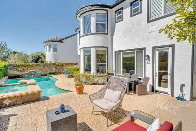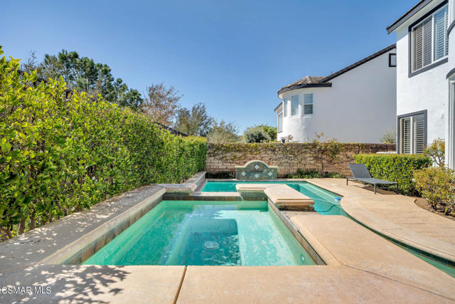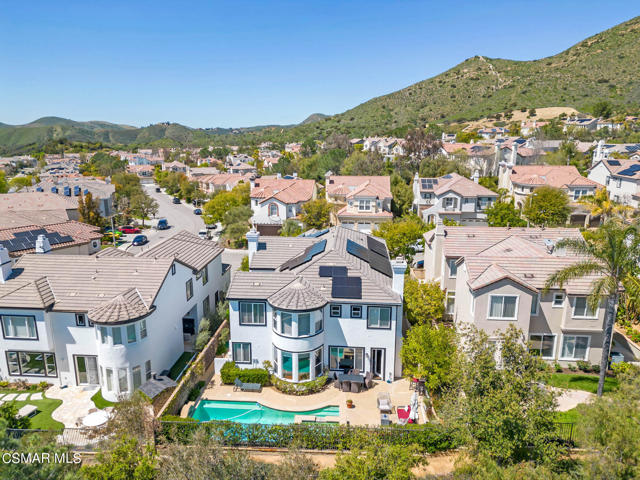 Welcome home to your contemporary modern Chambord/Oak Park property nestled up in the mountains with a serene backyard including pool/spa, built-in BBQ & outdoor fountains. Enter into the modern living room of this beautifully updated home with rich hardwood flooring throughout the downstairs, including the office and formal dining room. The wood doesn't stop there, it is taken all the way upstairs through all the bedrooms-not a detail was left undone. The home has no carpet. This is a home in the community unlike any other on the market. The stunning gourmet kitchen, which opens to the family room with fireplace, offers white shaker cabinetry, gorgeous marble quartz countertops with separate center island, Viking appliances, undercounter microwave, new range with hood & double Viking ovens. Head upstairs to the spacious primary bedroom featuring a sitting area and lavish ensuite bath. There are 3 additional bedrooms and downstairs office, with one bedroom located up a separate staircase with its own full bath, perfect for guests or a teenager! Other features include new Tesla solar batteries with electric car charger and 3 powerwalls (system can go days off the electrical grid if necessary all while having next to $0 in electric bills monthly), System is leased at $380 per month (0$ electric bill) Home has been equipped with a full filtered water system, you can even drink from the showers! In addition to that, there is also a full alkaline water system in the kitchen. Top dollar!!! New bathroom fixtures, Newly updated Master bathroom, The Chambord development sits atop Blackbourne Point, steps away from Deerhill Park offering tennis/pickleball courts, playground, sports fields and large picnic area, perfect for hosting birthday parties or team celebrations. Surrounded by hiking trails and within the highly coveted award-winning Oak Park Unified School district, this is the home you've been waiting for! Oak Park High School is top 100 in the country. Come and call Blackbourne your home.