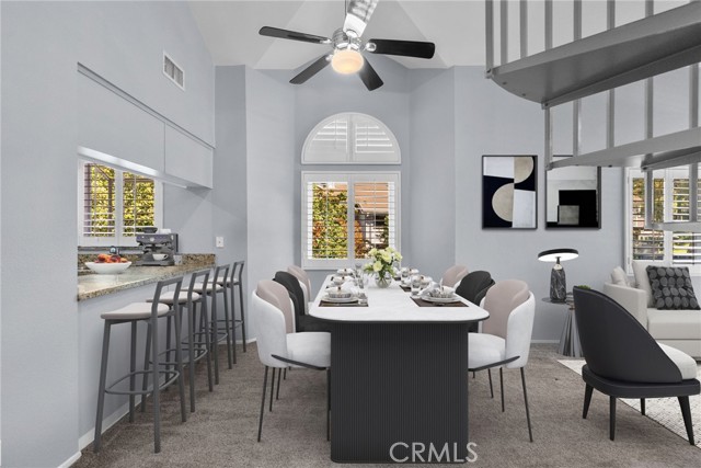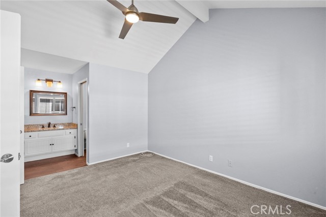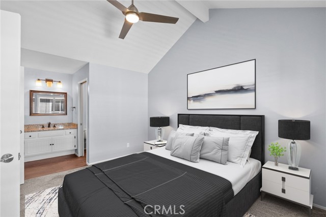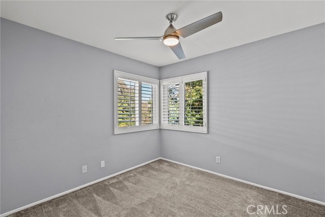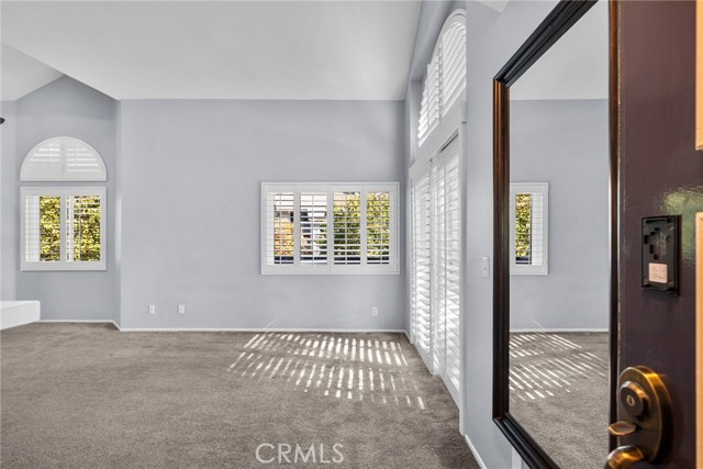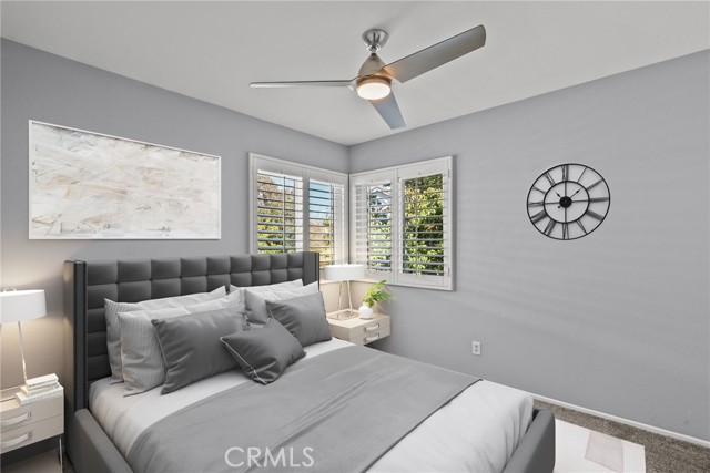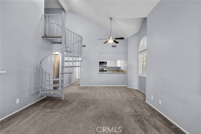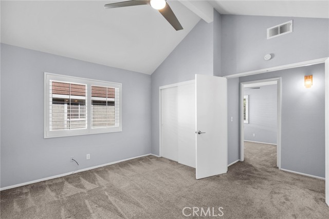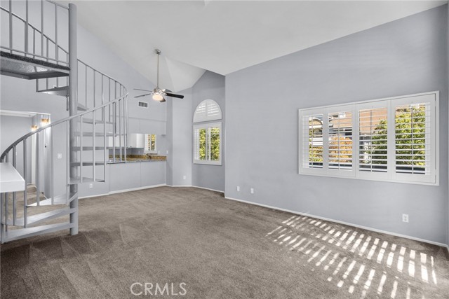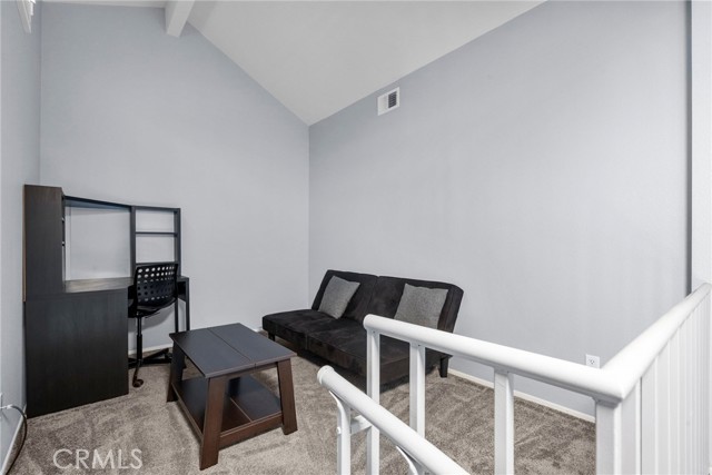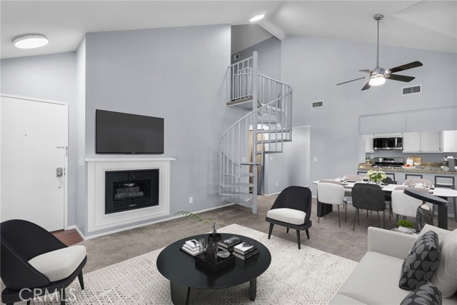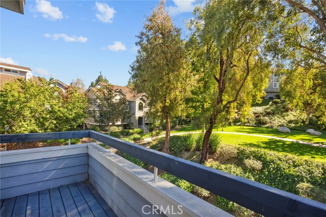 Welcome home to one of the most desirable locations in the community! An exceptional upper end unit offering rare privacy, abundant natural light, and an expansive layout that lives more like a single-family residence than a condo. This stunning home features 3 bedrooms plus a spacious loft, perfect for a home office, media lounge, or guest retreat. Step inside to discover a beautifully remodeled kitchen appointed with granite countertops, brand new LG smart stainless steel appliances, and modern LED recessed lighting. Both bathrooms have been tastefully upgraded with newer granite surfaces, updated plumbing and lighting fixtures. Soaring vaulted ceilings over 15 feet high create an airy and open atmosphere, complemented by NEW dual-pane windows, custom plantation shutters, and a NEW sliding glass door that enhance comfort, efficiency, and timeless style. Additional upgrades include a newer HVAC system, newer water heater, and fresh custom interior paint in some areas. Everyday convenience continues with private in-unit laundry featuring a NEW full-size MAYTAG washer and dryer. Enjoy peaceful mornings and relaxing evenings on your private balcony overlooking the serene greenbelt, with the pool nearby yet positioned for quiet enjoyment. The extra-spacious private 2-car garage offers both practicality and flexibility for parking, storage, or hobbies. Truly move-in ready, this residence offers an elevated level of comfort, convenience, and lifestyle that is hard to match. Community amenities include multiple pools, spas, tennis courts, playgrounds, and beautifully maintained plush greenbelt areas, all surrounded by the convenience of nearby shopping, dining, entertainment, top-rated schools, biking and hiking trails, freeway access, and Metrolink stations. No Mello Roos. HOA coverage of water, trash, exterior maintenance, and insurance. Schedule your private showing today, this is one you don’t want to miss.