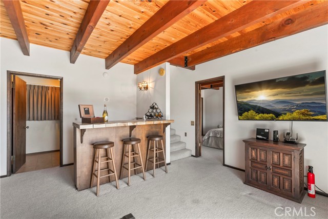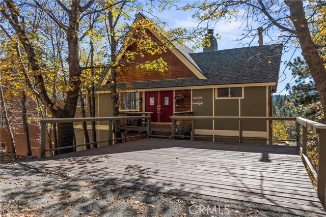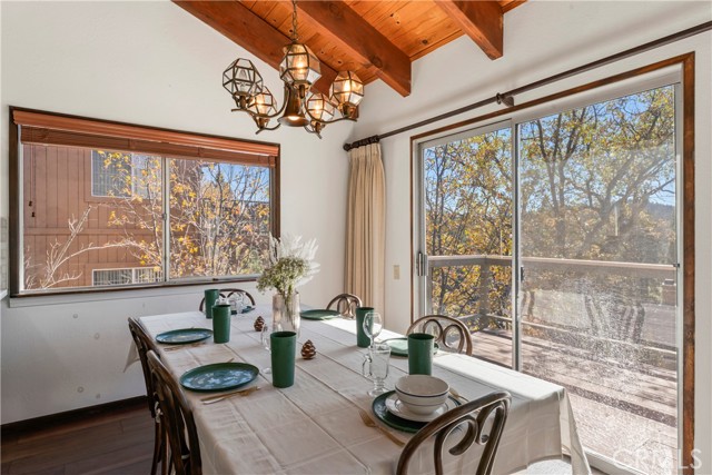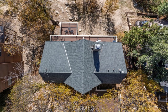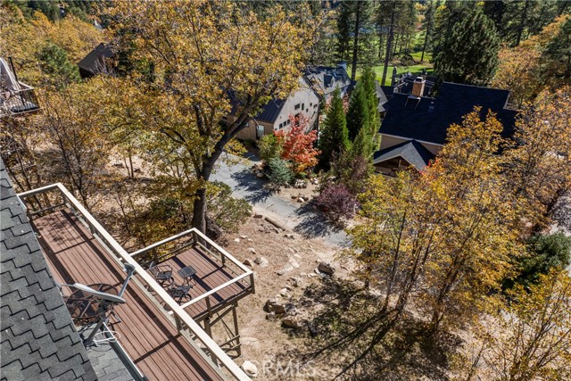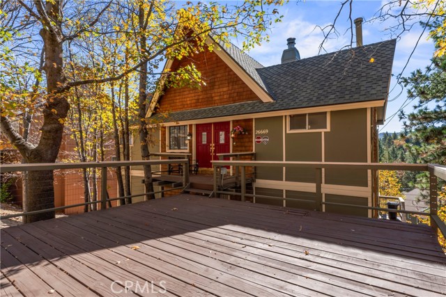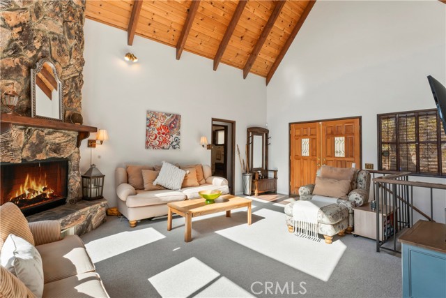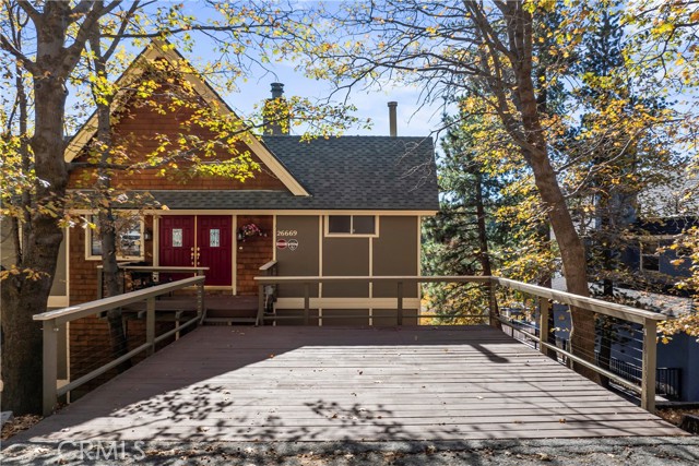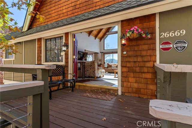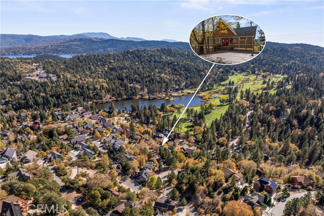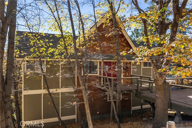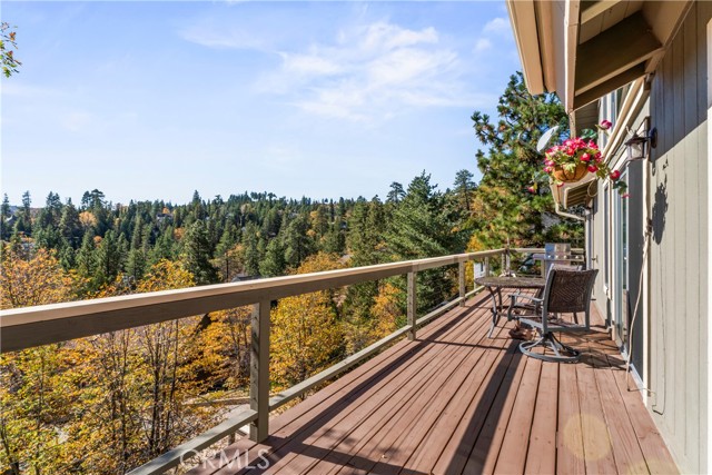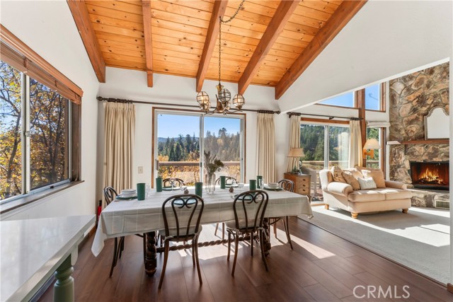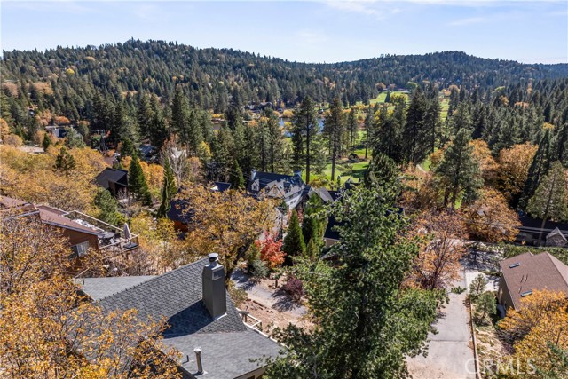 Perched high above the treetops, this lovely 3 bedroom, 2 bath Thunderbird-style home captures panoramic forest and mountain views, with peaks of the golf course and Grass Valley Lake. Light-filled interiors and easy street-level access make this the perfect getaway or full-time home in one of Lake Arrowhead’s most peaceful neighborhoods. The main level offers a spacious living room with dramatic floor-to-ceiling windows and a striking stone fireplace, a remodeled kitchen with updated finishes and a new Samsung refrigerator, plus a primary bedroom and bath. Downstairs, you’ll find two additional bedrooms, a large full bath, a laundry area with new washer and dryer, and a family room complete with a wet bar - ideal for entertaining guests or cozy nights in. Expansive decks on both levels invite you to take in the serene woodland setting, while the backyard extends down to an access road for added convenience. The home also features a parking deck with an electric vehicle charger, beamed ceilings throughout, and coveted lake rights to enjoy all that the area has to offer. Located just a short drive from the hiking, shops, and restaurants, this quiet hillside retreat combines mountain charm, modern comfort, and the best of the Lake Arrowhead lifestyle.