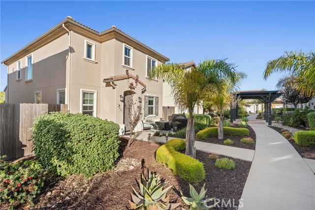 Built in 2018, this two story 3 bedroom 2.5 bath residence offers 1,532 square feet of living space with style and thoughtful upgrades. The entry opens to a vaulted main level filled with natural light, where living, dining, and kitchen areas connect in an open layout for daily living and entertaining. Designer lighting, including a dramatic spiral chandelier with matching pendants, updated LED fixtures, and new ceiling fans, creates a warm, welcoming atmosphere. The kitchen blends function and comfort with stainless steel Energy Star appliances, an upgraded dishwasher, and a reverse osmosis water system. Downstairs, upgraded window coverings, including a Roman shade in the kitchen, soften the sunlight and frame the views. Upstairs, blackout blinds in the bedrooms support restful nights and peaceful mornings. The primary suite offers an extra large walk in closet with an updated barn door and a luxurious private bathroom with a built in soaking tub, separate walk in shower, enclosed toilet room, dual sink vanity, updated bath fixtures, and upgraded shower heads. Secondary baths also enjoy refreshed hardware and lighting. A nearby laundry closet with added cabinetry keeps essentials neatly stored. Comfort and efficiency continue behind the scenes with a solar energy system from NRG with pigeon guards and panels expanded in 2019, tankless water heater, 240V outlet in the garage for an electric vehicle, whole home water softener, and an updated Nest thermostat, all working with LED lighting to help manage utilities and support modern living. Outdoors, the parcel is finished with tanbark, pavers, artificial turf, and a screened trash area, along with landscaped front grounds for simple care. The setting makes daily life feel easy, with parks, shopping, and restaurants only minutes away, including Enos Ranch and Santa Maria Town Center. Central Coast beaches such as Point Sal, Pismo Beach, and Oceano Dunes and the vineyards of Santa Ynez wine country are close enough for spontaneous sunset drives and weekend escapes. Located along California’s Central Coast, the home is roughly an hour and fifteen minutes from Santa Barbara, with easy trips to Los Angeles and San Francisco and access to regional employment in healthcare, education, aerospace, agriculture, and wine related industries.