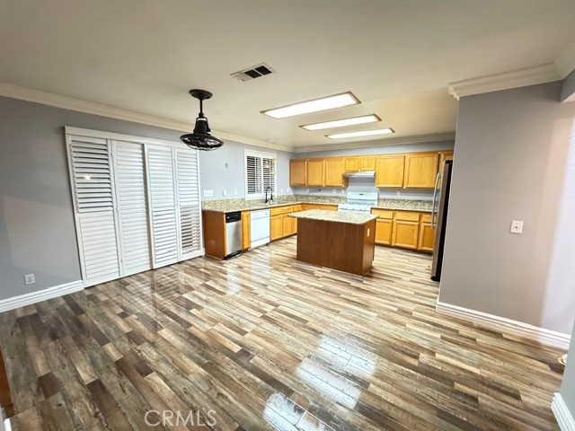 Absolutely Turn Key Home! NEW PAINT AND NEW FLOOR. This open floor plan has 4 bedrooms with a large loft, open kitchen with plenty of cabinet and counter space. This property has several upgrades and energy saving features like, solar, cool coat upgraded paint job with Warranty, water softening system, 2 ac units, whole house fan and an attic fan. Recent updates include fully updated downstairs guest bathroom, newly remodeled and reinforced deck, shutters throughout, crown molding, newer thick wood laminate flooring, large walk in pantry with 1st level laundry room. Outside you'll find a very roomy level backyard which includes an insulated patio with fan and canned lighting, gas fire pit, mature trees throughout all lined with new decorative vinyl fencing, This is a must see!!