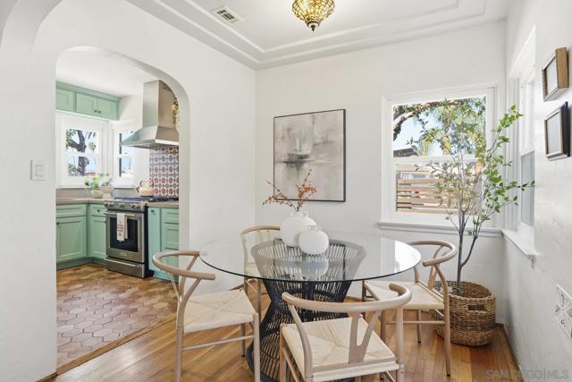 Timeless Spanish-Style Craftsman in Vibrant University Heights/North Park. 2 bed WITH A BONUS ROOM/OFFICE/BEDROOM. Nestled in the highly sought-after University Heights/North Park neighborhood, this stunning Spanish-style Craftsman home blends classic charm with modern curb appeal. With approximately $75,000 in renovations, this residence offers authentic Spanish tile, gleaming hardwood floors, and elegant arched niches that exude character. Its prime location near parks, restaurants, and freeways makes it ideal for those craving a walkable, vibrant lifestyle. Recent Upgrades: Fresh stucco (2021), roof maintenance (2024), and enhanced attic/wall insulation (2021) for superior energy efficiency. 240V outlet for car charging in the garage (2023), new water heater (2021), updated interior electrical (2017), and centrally ducted electric AC/heat (2017).Remodeled bathroom (2016) and a breathtaking kitchen with custom cabinetry (2017). Upgraded plumbing and sewer, pre-plumbed for an additional bathroom in the back office (2017).Modern exterior fencing installed. Recently painted, floors refinished. Enjoy the charm of a classic home with modern conveniences! WALK SCORE IS 94! A "WALKER'S PARADISE"