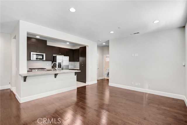 Welcome to BelVista in Beautiful Temecula! This stunning two-bedroom, two-bath condo offers stylish single-level living on the second floor with direct access from the attached two-car tandem garage. Located in the sought-after Bella Vista community, this home provides convenience, comfort, and contemporary design just minutes from the freeway, shopping, dining, and all that Temecula has to offer. Step inside to discover an open and bright floor plan featuring wood-style flooring in the living and dining areas, and travertine stone floors in the kitchen, bathrooms, and laundry. The modern kitchen is beautifully appointed with stainless steel appliances, quartz countertops, and contemporary thermofoil cabinetry. Both bathrooms showcase e-stone counters, and the home is finished with dual-pane windows with blinds, a tankless water heater, and solar for energy efficiency. Enjoy resort-style living with access to community amenities including a sparkling pool, parks, and barbecue areas—perfect for weekend relaxation and entertaining. Experience the best of Temecula living in this beautifully upgraded condo at BelVista!