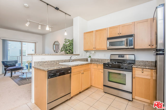 Sun-filled living meets resort-style amenities in this thoughtfully designed Savoy studio overlooking the tranquil pool courtyard and treetops. The open layout is enhanced by a softly curved architectural wall that creates a defined sleeping area while preserving an airy sense of space. Natural light filters in through sliding doors that lead to a private balcony ideal for a morning coffee, remote work in the fresh air, or winding down at sunset. The kitchen offers granite countertops, ample cabinetry, and stainless steel appliances, making everyday cooking both practical and enjoyable. The living space easily accommodates both lounging and dining, while the spacious bath and in-unit laundry add comfort and convenience. Savoy residents enjoy an impressive collection of resort-inspired amenities spread across multiple courtyards, including a sparkling pool and spa, fitness center, sports cafe, business center, conference room, screening room, library, and a rooftop deck with skyline views. Additional conveniences include gated assigned parking, guest parking and a 24-hour attended lobby. Situated at the crossroads of Little Tokyo and the Arts District, this home places you in the heart of one of DTLA's most vibrant neighborhoods surrounded by eclectic dining, cafes, markets, galleries, and cultural destinations. Here, urban energy meets everyday ease.