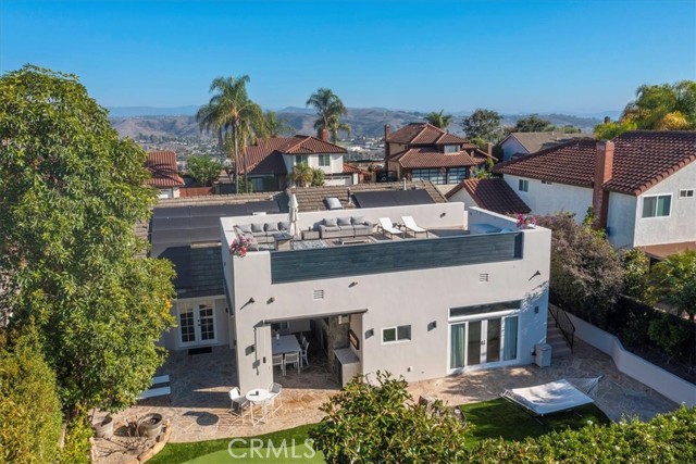 Luxury Living Redefined – Single-Story Elegance with Rooftop Views Forget the Ritz Carlton—this extraordinary single-story, 4-bedroom, 3-bath home will make you want to come home from every vacation! Designed for relaxation and entertainment, this property blends sophisticated craftsmanship with resort-style amenities and breathtaking views. Step inside to discover rich French Oak hardwood floors, elegant crown molding, and built-in speakers throughout. The chef’s kitchen showcases soapstone countertops, Monogram appliances, and abundant custom cabinetry for storage. The seamless open layout flows into the inviting living areas, perfect for gatherings or quiet evenings by the fire. The primary suite is a true retreat, featuring a spa-inspired bathroom with a Jacuzzi tub, massive multi-head shower with steam and chroma therapy, and a cozy gas fireplace for the ultimate in relaxation. Each secondary bedroom is spacious and stylish, with upgraded bathrooms that mirror the home’s luxury finishes. Outdoor living takes center stage with a spectacular 800-square-foot rooftop deck offering panoramic Saddleback Mountain views, an entertainer’s loggia with a grand stone fireplace and outdoor TV, and a private 6-hole putting green. Enjoy the Southern California lifestyle year-round under the stars or around the fire. Additional highlights include leased solar panels, estate-style iron front doors, Newly painted outside, and a location near top-rated schools, parks, and beaches on a peaceful cul-de-sac street. This is more than a home—it’s a lifestyle.