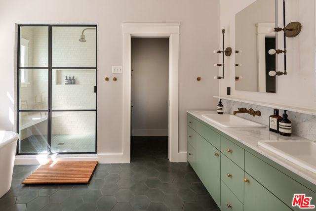 Perched high atop a sweeping lawn in Los Feliz, this ultra-private 1921 Mission Revival estate offers timeless charm on a generous 14,000+ sq ft lot. Anchoring the property is a fully reimagined 3 bed/3.5 bath main residence, complemented by a permitted architectural 1 bed/1 bath guest house. The home greets you with a graceful portico and gently curving bell-shaped staircase, flanked by elegant jade-filled pots -- a striking prelude to the sophistication within. Inside, light and space define the residence. Soaring barrel ceilings, expansive arched doorways, and tall original casement windows frame southern city views and draw in cooling breezes. The inviting living and dining rooms flow effortlessly through original French doors onto a broad tiled terrace and barbecue area, adorned with clusters of terracotta planters and anchored by a majestic date palm, creating an ideal setting for entertaining or quiet contemplation. Each spacious bedroom is a private sanctuary, featuring bespoke walk-in closets and opulent en-suite baths finished in luxe materials. The kitchen balances design and function with custom cabinetry, soapstone countertops, cork flooring, and a character-rich breakfast nook with original built-ins. Complementing the main living areas, an intimate additional space offers flexibility as a dedicated office, playroom, or inspiring creative studio. A lower-level bonus space with private driveway access provides additional space for a gym, office, and plentiful storage, seamlessly expanding the home's footprint. The guest house, completed in 2019, mirrors the architectural sophistication of the main residence. Steel-framed windows and doors, wide-plank oak floors, and custom built-ins including a king-size Murphy bed create a versatile space for guests, staff, or work-from-home living. Professionally designed gardens by Art Luna envelop the property, featuring romantic landscaping and ample room for a pool, offering a serene retreat from city life. A two-car garage with an EV hookup completes this exceptional compound. Located moments from the boutiques, cafes, and specialty markets of Los Feliz Village and the historic trails of Griffith Park, this is a once in a lifetime opportunity to live the epitome of the southern California lifestyle.