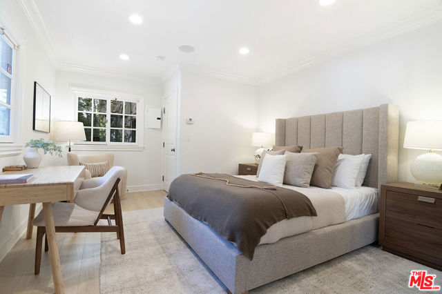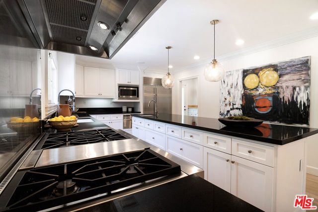 Set above the street in a fabulous part of lower Bel Air sits this desirable single-level home at 1132 Chantilly Road. Formal double-door entry welcomes you to an open, grand room with a beautiful centerpiece fireplace, which sets the tone for over 2,500sft of living space. Extending off the great room is a grand kitchen with high-end Wolf and Sub Zero appliances and showcasing a giant island perfect for preparing or congregating. The generous primary bedroom complete with fireplace doesn't disappoint in size or comfort, offering separate sitting or office space and provides direct access to the grassy backyard. Oversized primary bathroom with large soaking tub and a large walk-in closet round out the primary experience. Outdoors, enjoy a large grassy backyard along with extensive patio space perfect for enjoying the privacy created within this more than 1/2 acre lot. The location cannot be beat, set near some of the finest estates in LA, and providing easy access to the Westside, BH and everywhere you'd like to be.