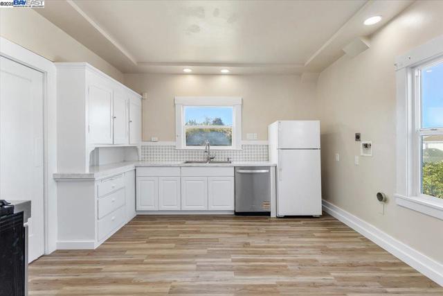 Come see this spectacular well-maintained West End four-plex with two homes on one large lot. 629 Santa Clara offers a vacant large 2+ bedroom unit with full living and dining rooms with built-in cabinetry, hard wood floors, and in-unit laundry hookups situated above 2 one bedroom occupied units below. In the rear of the property is 631 Santa Clara, a beautiful vintage 2-bedroom cottage with forced air heating, in-unit laundry, and private back deck. Updated electrical throughout both structures with separate meters for electric, gas, and water. Every unit in 629 Santa Clara has efficient electric heat pump HVAC to stay warm or cool all year long. Low maintenance grounds with newly laid pavers throughout. At or near market rate rents on all three occupied units offer excellent cash flow to offset a mortgage. Added bonus: partially finished basement with kitchenette, small full bath, and its own heat pump system. Also has spacious storage, workroom, and laundry. This property has it all, and is situated in the lovely West End of Alameda just a block from bustling Webster Street's shops and restaurants, and close to transit, parks, schools, the beach, and everything the city of Alameda has to offer.