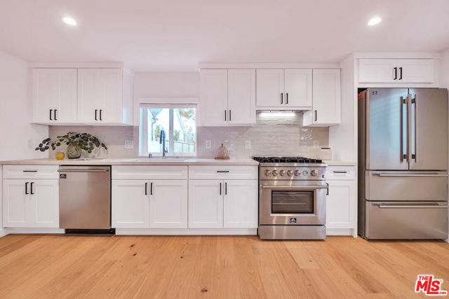 Westport Heights offers this newly constructed home with a permitted ADU. Welcome to this completely redesigned and meticulously renovated single-level residence located on a peaceful, tree-lined street. The main home features 3 spacious bedrooms plus an office, 2 beautifully updated bathrooms, and an expansive open-concept layout designed for modern living. At the heart of the home is a show stopping chef's kitchen with custom shaker cabinets, a sleek L-shaped peninsula, quartz countertops, top-of-the-line Forno appliances, designer fixtures, and sophisticated tilework perfect for both entertaining and everyday living. Interior upgrades include brand-new luxury vinyl plank flooring, dual-pane windows, updated electrical, recessed lighting, and central heating & air conditioning for year-round comfort. The newly constructed primary suite boasts a walk-in closet, soaring vaulted ceilings, and a spa-like ensuite bath with a new double sink vanity. Adding even more value is the fully permitted 1-bedroom, 1-bath Accessory Dwelling Unit (ADU) with its own private entrance and separate address ideal for rental income. The ADU offers a full kitchen with Forno appliances, walk-in closet, beautifully tiled shower, and two mini-split A/C units. This is a rare opportunity to own a fully upgraded, versatile property in one of Westside LA's most desirable enclaves. Just minutes from Playa Vista, Silicon Beach, LAX, and major freeways. Main house is 4/2/1950SQ & ADU 1/1/572SQ4 bedroom house / 1 bedroom 1 bath ADU Seller is willing to modify home to buyers specifications before the close of escrow.