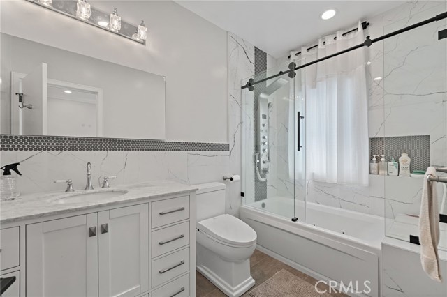 Welcome to this stunning two-story home offering 2,482 square feet of modern living space on a 5,158 lot . Built in 2021 , this property combines contemporary style, comfort and functionality, perfect for today's lifestyle. Upstairs, you'll find four spacious bedrooms and three full bathrooms which includes a primary bedroom with primary bathroom, a secondary bedroom also features its own attached bathroom, ideal for guests . Downstairs, the home offers an open and versatile floor plan with multiple living spaces, including family room, living room with a cozy fireplace, formal dining area and a private office with attached bathroom. The chef's kitchen is thoughtfully designed with a large pantry & kitchenette, and a bar area perfect for entertaining. additionally downstairs features a convenient half bath for guests. Enjoy modern construction, ample natural light and a layout that balances open spaces with private retreats. This move-in ready home offers both comfort and elegance in every detail.